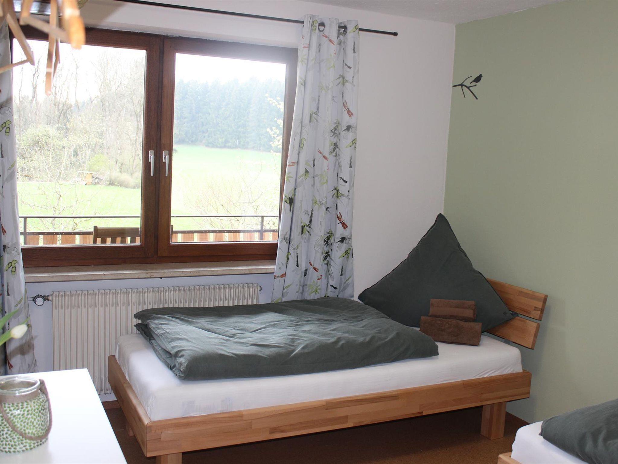 Groß, gemütlich und komfortabel eingerichtet ist die Wohnküche mit dem rustikalen Eichenholztisch. Das Wohnzimmer spiegelt schicken Allgäuflair wieder und bietet herrlichen Ausblick ins Grüne. Alle Schlafzimmer sind mit Korkboden ausgestattet. Zimmer Wiese bietet zwei einzelne Holzbetten, Zimmer Wald ein hohes Doppelbett und Zimmer Mond wieder zwei einzelne Betten. Bad und WC sind separat.