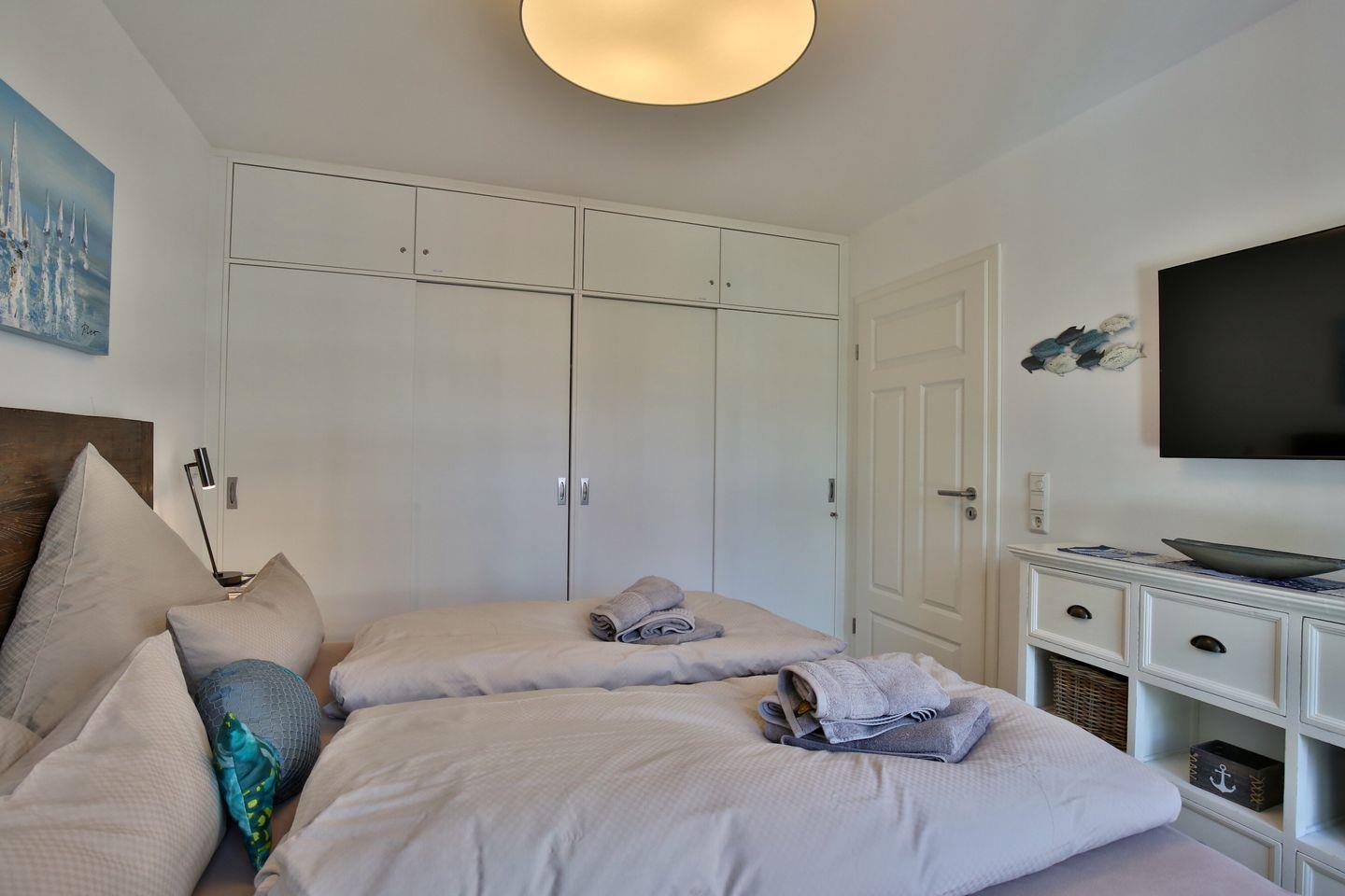 Ihre Ferienwohnung auf Wangerooge bietet auf 62 m² genügend Platz für 4 Personen. Das Apartment verfügt über 1 Schlafzimmer mit Hochbett und ein großes Schlafzimmer mit Doppelbett, 43 Zoll UHD TV und viel Stauraum.