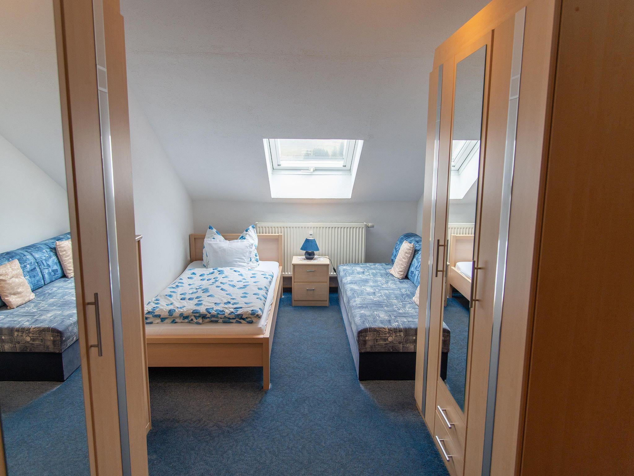 Ferienwohnung 4 mit 4**** klassifiziert Größe 90 m² für 2 bis 6 Personen 3 Schlafzimmer (1 x Doppelbett, 2 x je 2 Einzelbetten) Küche mit Spülmaschine Wohnzimmer mit Sat -TV (Flachbildfernseher) Bad, Badewanne und Dusche Grillmöglichkeit Balkon