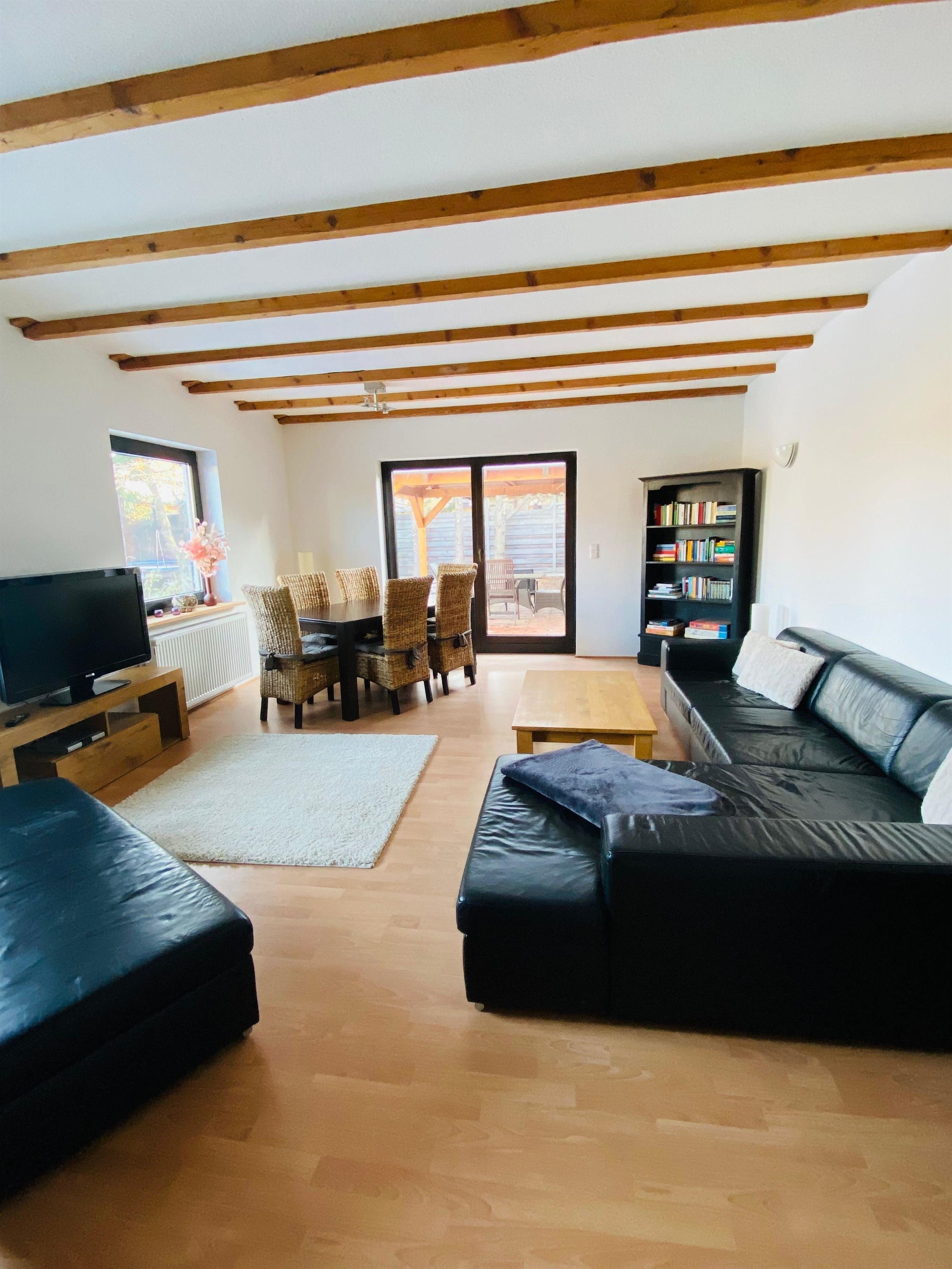 Modern und komfortabel eingerichtet, mit Terrasse, Garten, überdachtem Freisitz und Kamin.