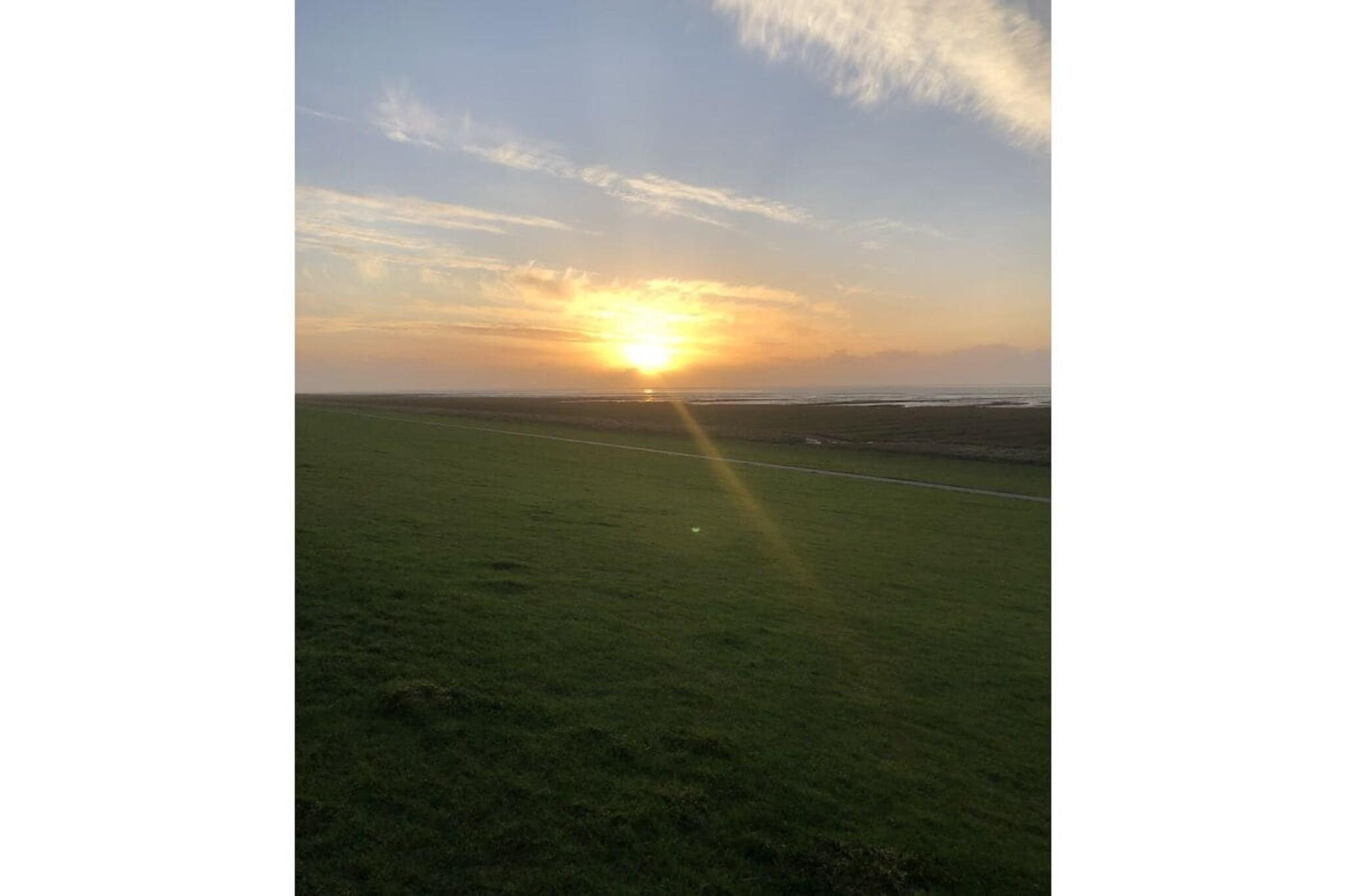 Skandinavisches Holzhaus mit Sauna und Kamin. Stilvoll eingerichtet für bis zu 5 Personen. Blick direkt auf den Deich, die Nordsee und der Naturstrand liegen ca. 200m entfernt. Familien mit Kindern oder Paare, die das Klima der Nordsee lieben und suchen oder Kennenlernen möchten, sind bei uns genau richtig. Einfach mal abschalten, den Alltagsstress hinter sich lassen, im Strandkorb auf der Terrasse mit Blick auf den Deich oder in der Sauna relaxen. Grillen im Garten auf dem Weber Grill oder Kochen in der gemütlichen Küche mit dem Thermomix - je nach Wetterlagen lässt es sich hier genießen. In unserem Haus könnt ihr die Nordsee in allen Zügen genießen - erst eine ordentliche Wanderung auf dem Deich, anschließend in der Sauna aufwärmen und vor dem Kamin relaxen. Das besondere Flair lädt dazu ein, den Alltagsstreß hinter sich zu lassen, und sich von der Stille und Gemütlichkeit treiben zu lassen. Das Haus verteilt sich auf ca. 68 qm. Vom Wohnzimmer aus gelangt man auf den kleinen Alkoven, auf dem sich eine Matratze auf dem Boden befindet, wo eine fünfte Person schlafen kann. Vom Wohnzimmer aus gelangt man in das Schlafzimmer mit Doppelbett und Ausgang auf die Südterrasse. Auch das Bad mit Sauna geht vom Wohnzimmer ab. Durch die Eingangstür betretet ihr direkt die Küche, von der das Zimmer mit den beiden Etagenbetten abgeht. Bad und Küche sind mit eleganten dunklen Fliesen gekachelt, im Wohnzimmer und den Schlafzimmer findet ihr Laminat in Holzoptik. Der große Esstisch mit bis zu 6 Sitzgelegenheiten befindet sich ebenfalls im Wohnzimmer. Dort ist auch der Fernseher und die Musikanlage.