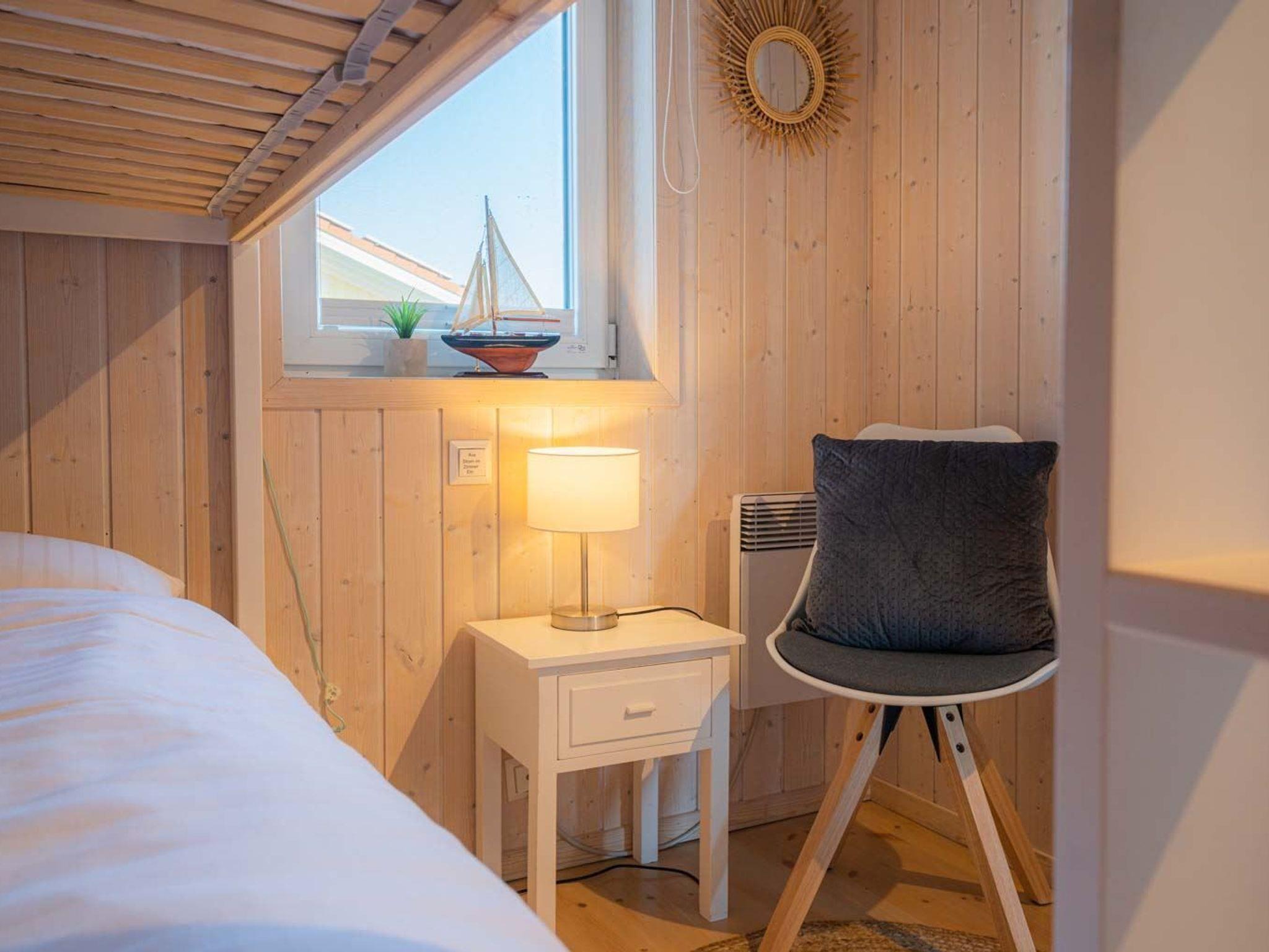 1. Schlafzimmer mit Doppelbett (2x 80x200cm), Stuhl und Kleiderschrank.