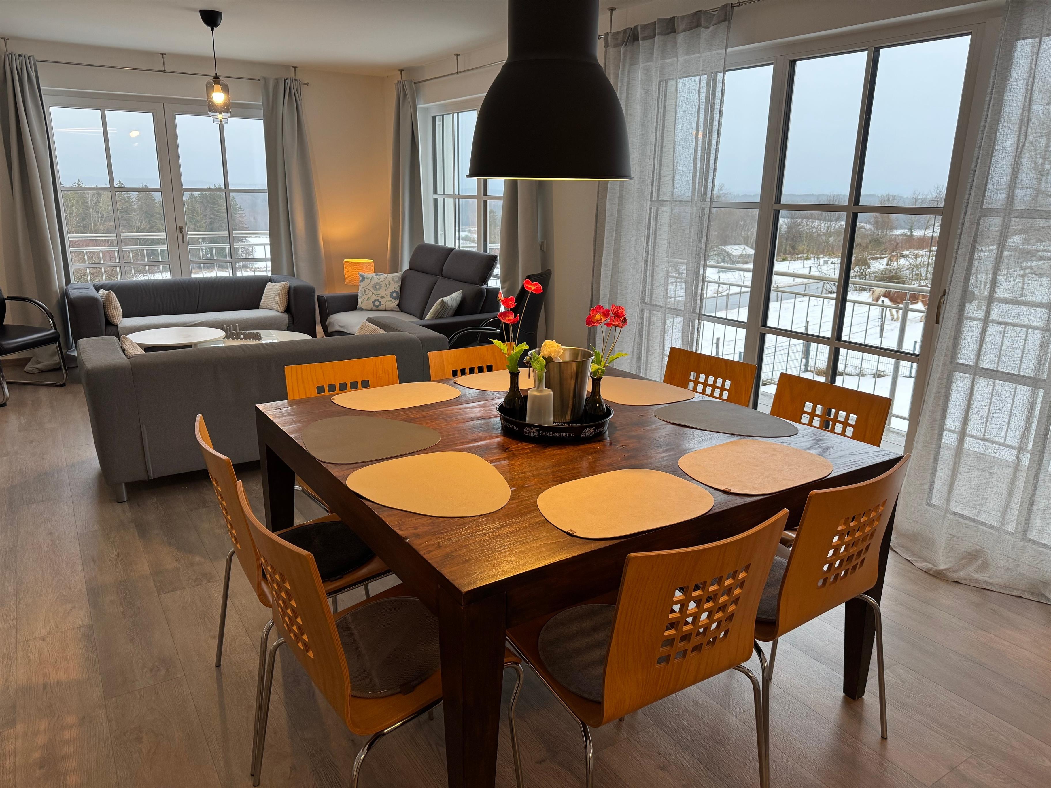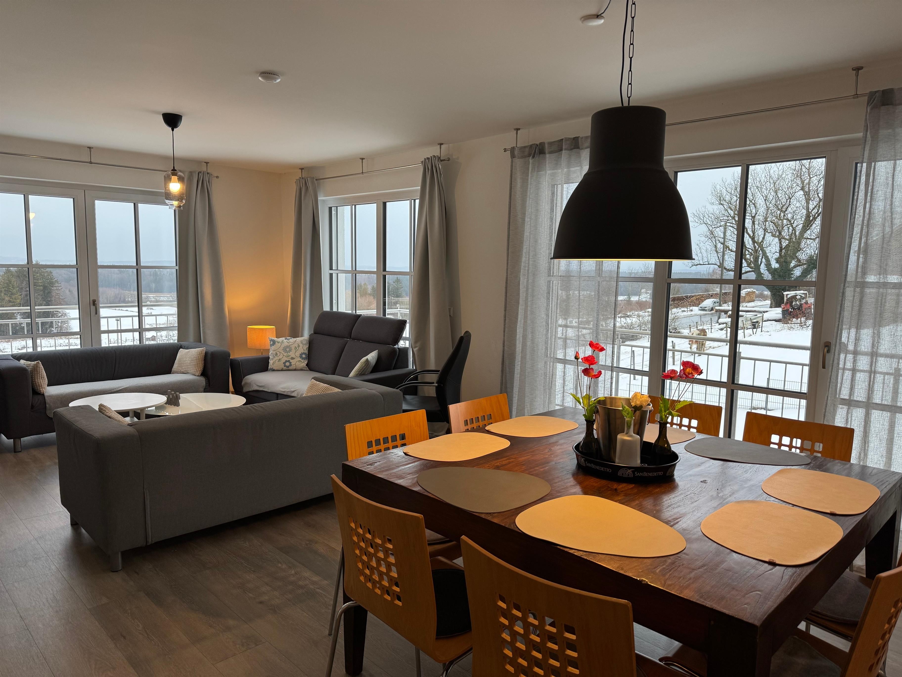 Willkommen in der Ferienwohnung "Panoramablick". Sie ist ausgestattet für bis zu 8 Personen + 1 Kleinkind (Kinder bis 1 Jahr sind bei uns frei) sowie max. 2 Hunde.
