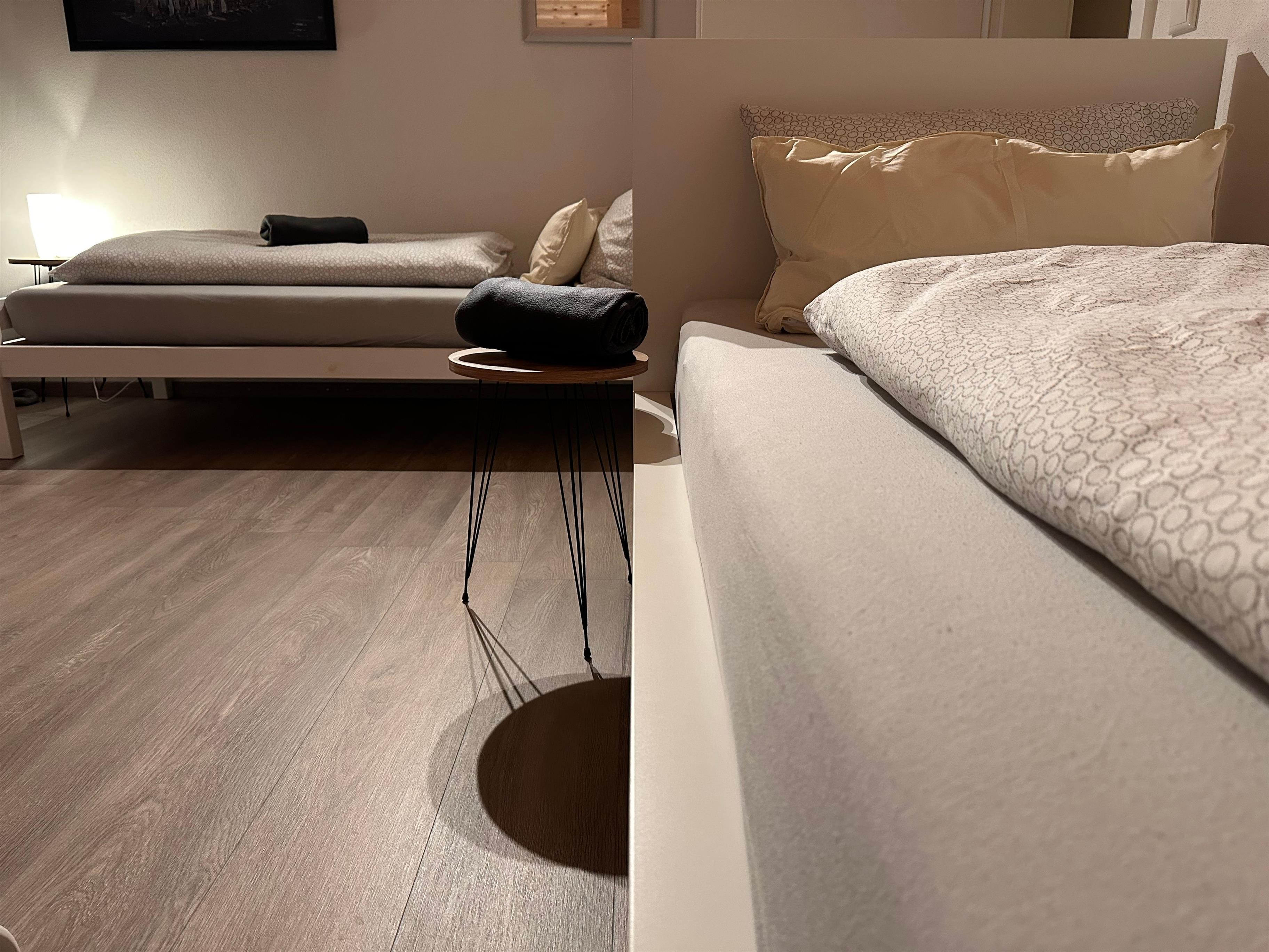 Ein Schlafraum mit zwei Einzelbetten 90 cm x 200 cm im Erdgeschoß