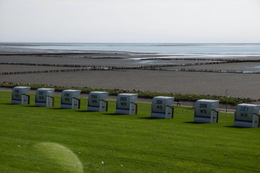 Moderne Ferienwohnung in Westerdeichstrich mit Balkon, WLAN und Strandkorb im Sommer inklusive.