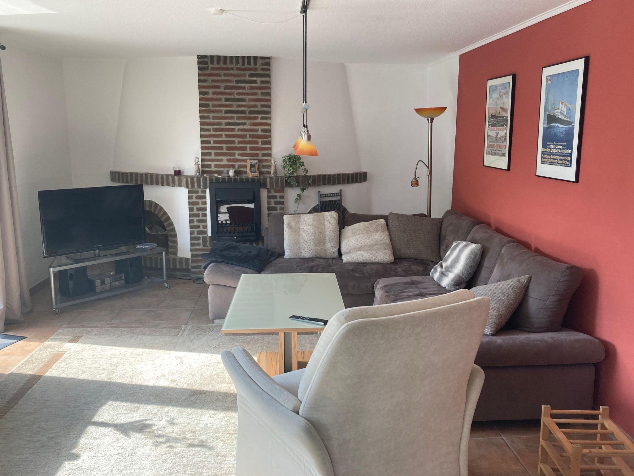 • Wohnzimmer mit Kamin und Terassenzugang
