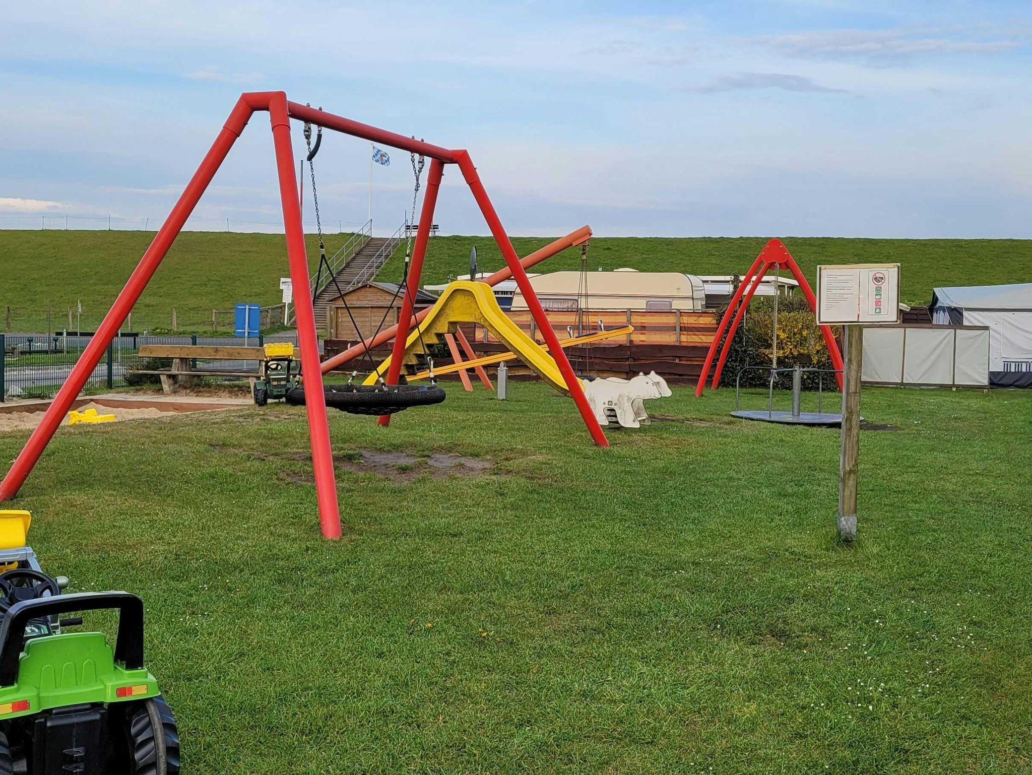 Gemütlicher Mietwohnwagen „Ecki“ auf familienfreundlichem Campingplatz an der Nordsee nahe Nationalpark Wattenmeer.