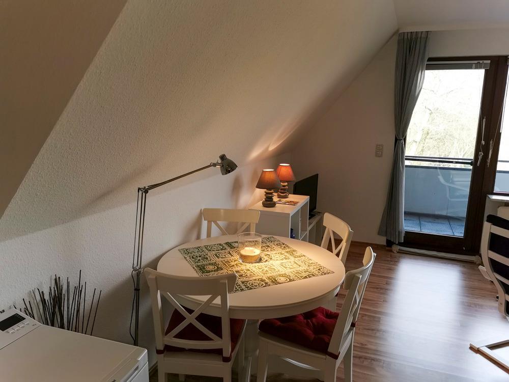 Im Hauptbereich der Wohnung ist ein Schlafsofa für zwei Personen. Vom Wohnzimmer gelangt man auf die überdachte Loggia. Diese lädt gerade im Sommer zu einem Frühstück unter freien Himmel ein. Genießen Sie dabei den Blick zum nahen Deich. Neben dem Wohn- / Schlafraum besteht die Wohnung aus einem kleinen Flur sowie einem sehr schönen Badezimmer.