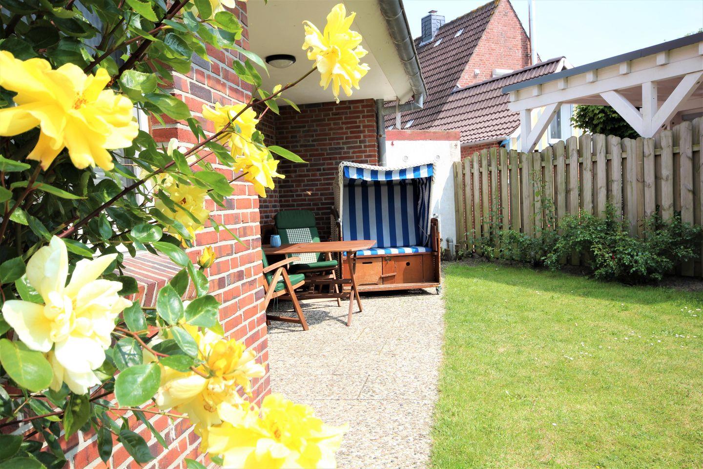 Auf der teils überdachte Sonnenterrasse können Sie die frische Nordseeluft genießen. Auch ein Grill ist hier vorhanden.