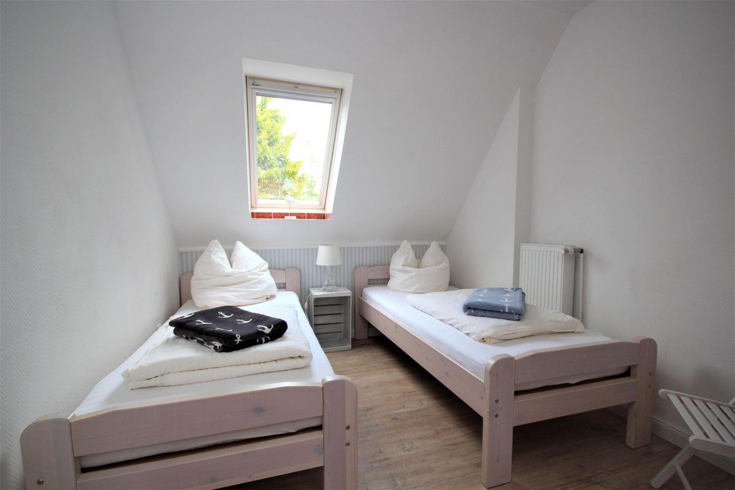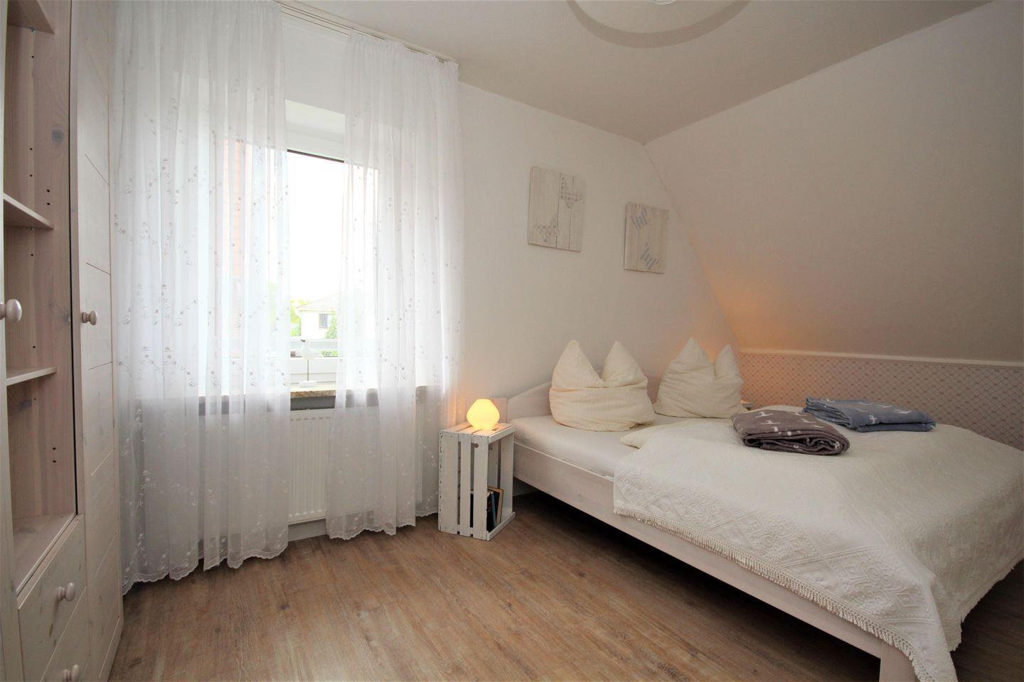 Von den 2 Schlafräumen ist eines mit einem Doppelbett ( 2 Einzelmatratzen) und das andere mit 2 Einzelbetten eingerichtet. Platz für ihre Urlaubsgarderobe gibt es ausreichend. Ein Kinderbett für kleine Gäste (bis 2 Jahre) steht kostenfrei zusätzlich bereit.