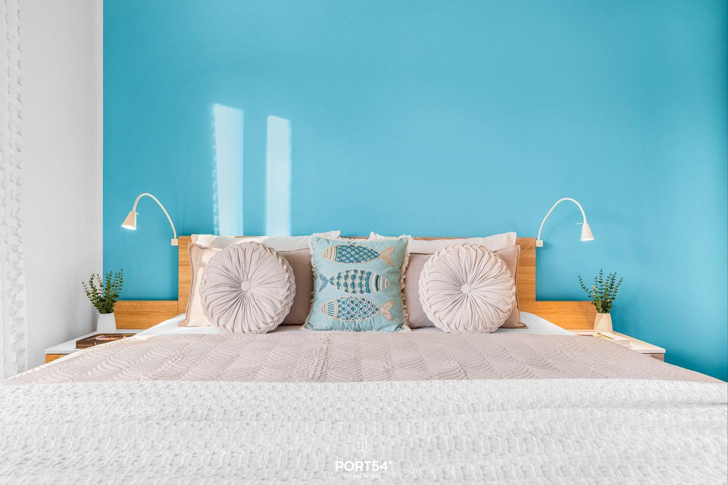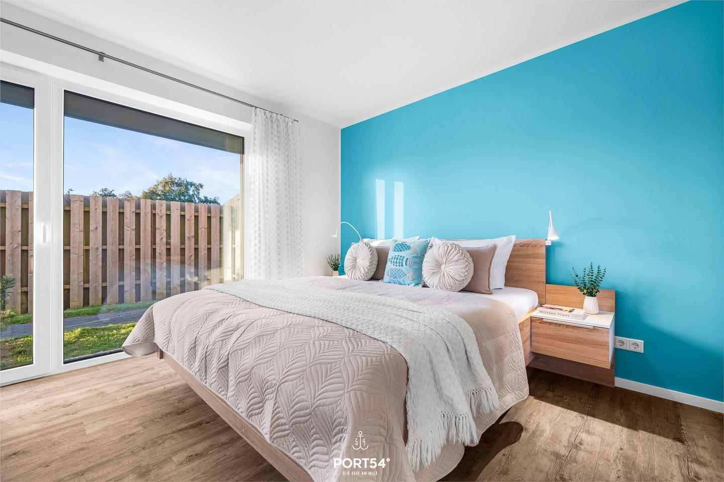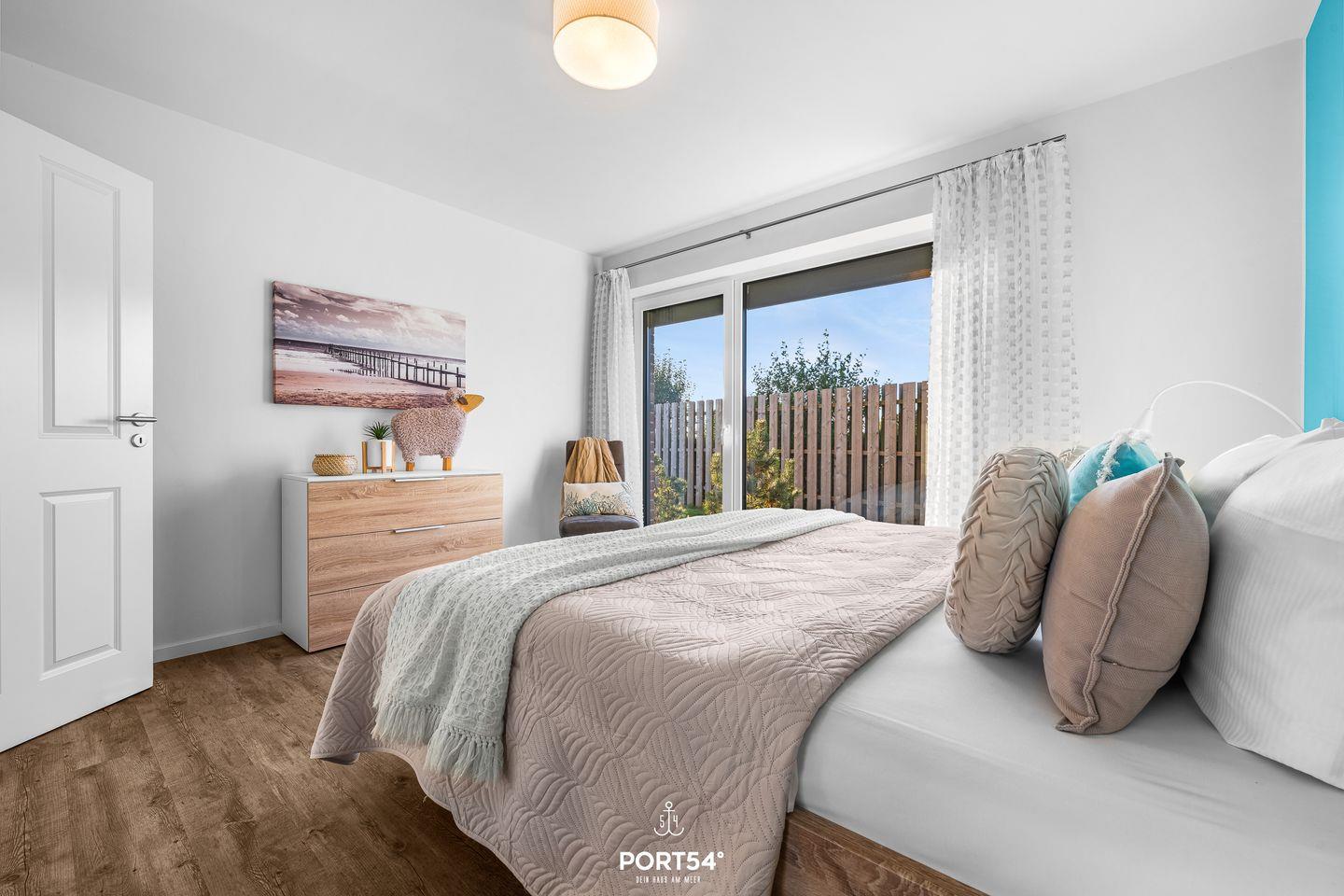 Das Schlafzimmer verfügt über ein komfortables Doppel-Boxspringbett (180 × 200 cm) für erholsame Nächte. Zwei weitere Personen können auf dem gemütlichen Schlafsofa im Wohnbereich (149 × 200 cm) übernachten.