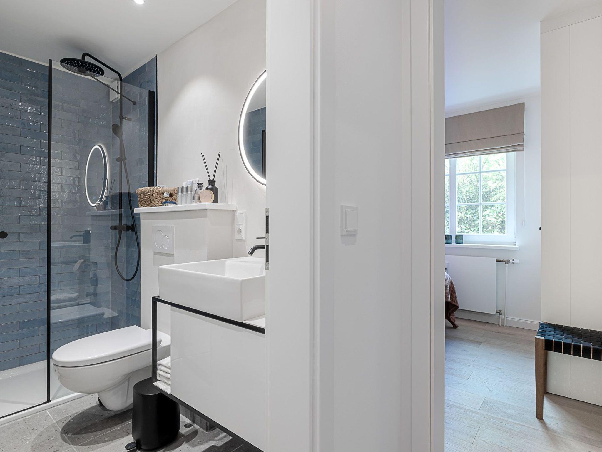 Direkt nach dem Aufstehen können Sie dann in Ihrer privaten Wellnessoase ausgiebig die Vorteile der großen Regendusche genießen. Dort sorgen u.a. eine angenehme Fußbodenheizung und ein Handtuchwärmer für verdientes Wohlbefinden, gerade an etwas kühleren Tagen.