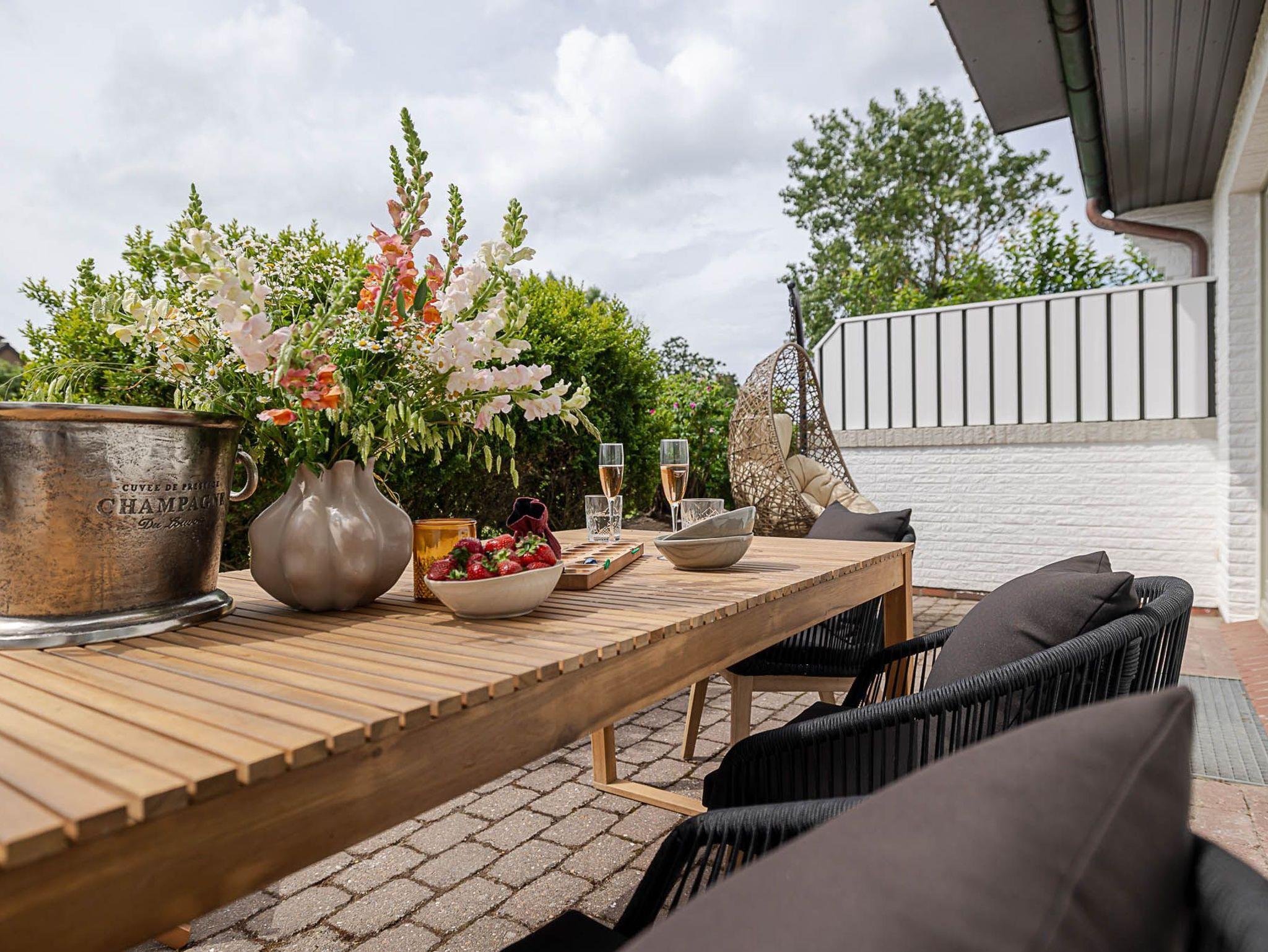Ein weiterer Wohlfühlort ist Ihr privater Outdoor-Bereich. Auf Ihrer eigenen Terrasse, die Sie von Mai bis Oktober mit komfortablen Terrassenmöbel erwartet, können Sie den Tag beginnen oder beim Gläschen Wein ausklingen lassen. On top gibt es hier natürlich immer gratis eine Extradosis frische Nordseeluft.