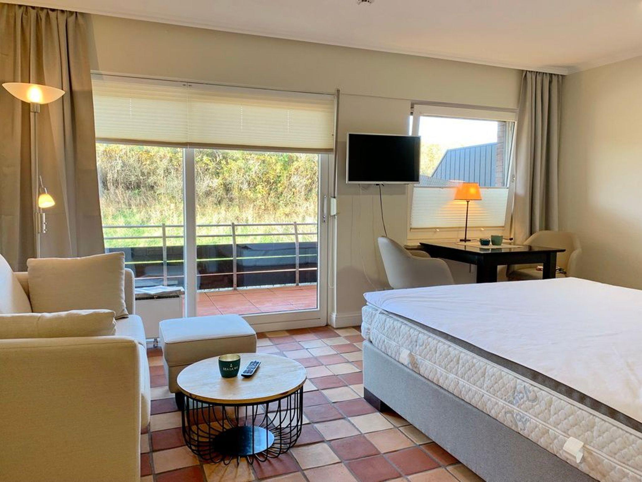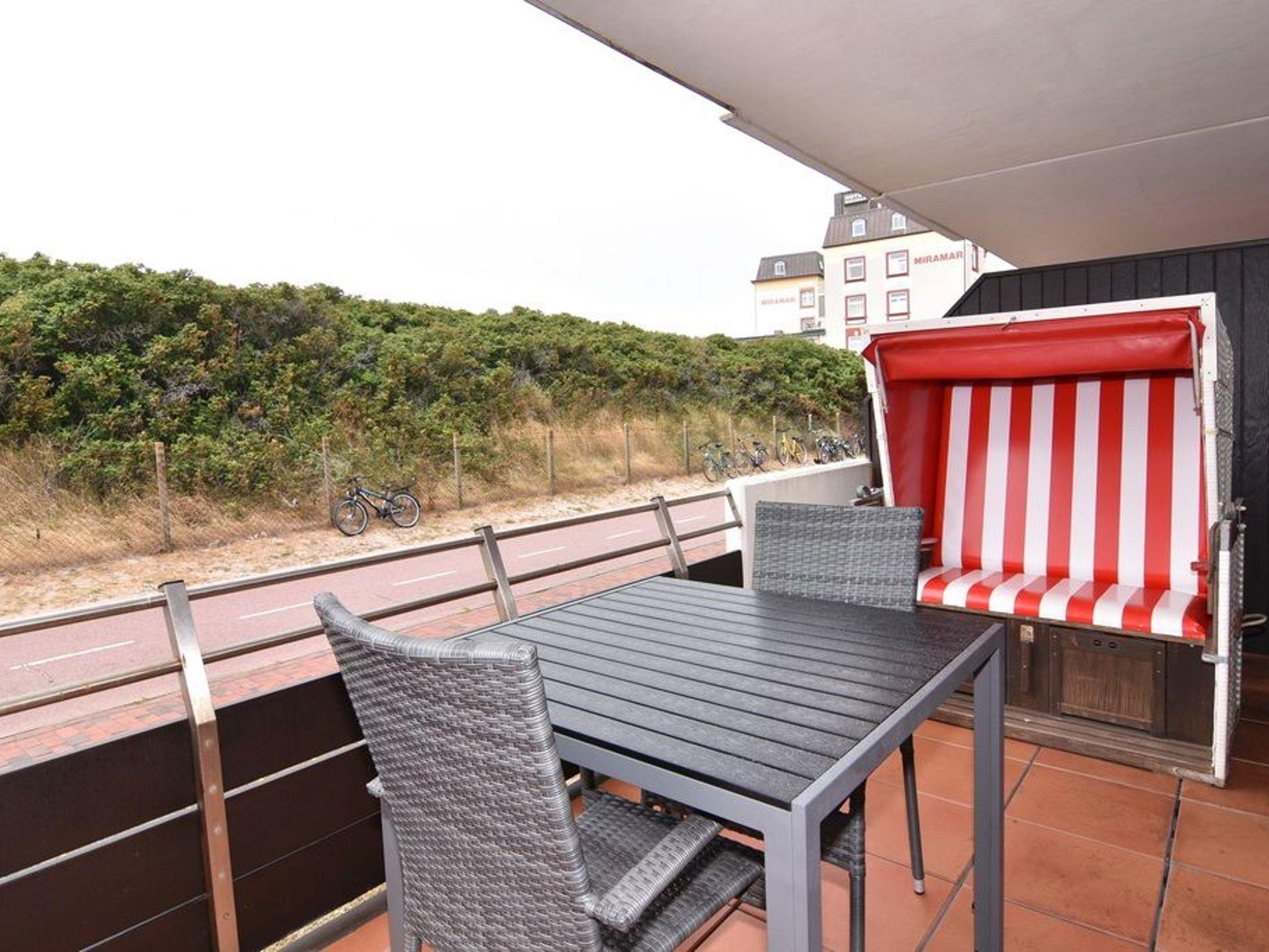 Modernes 1-Zimmer-Apartment mit Westbalkon und Strandkorb nur 50 m vom Strand in Westerland auf Sylt.