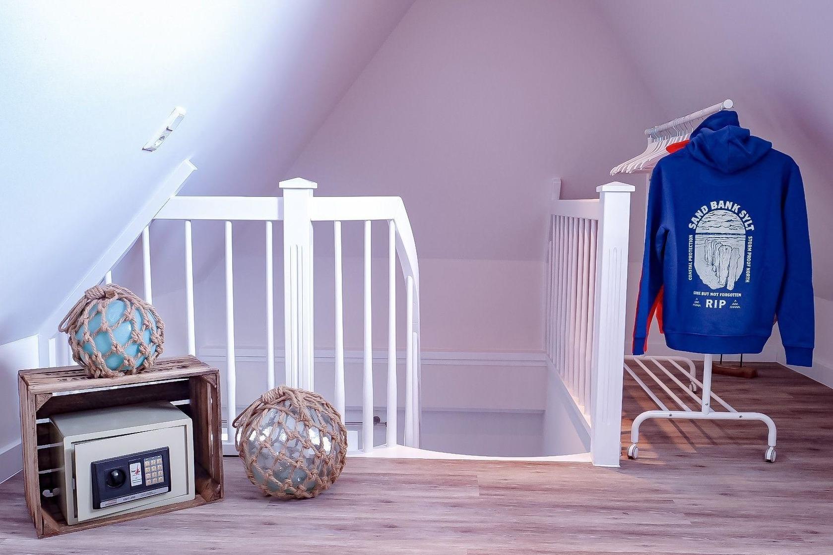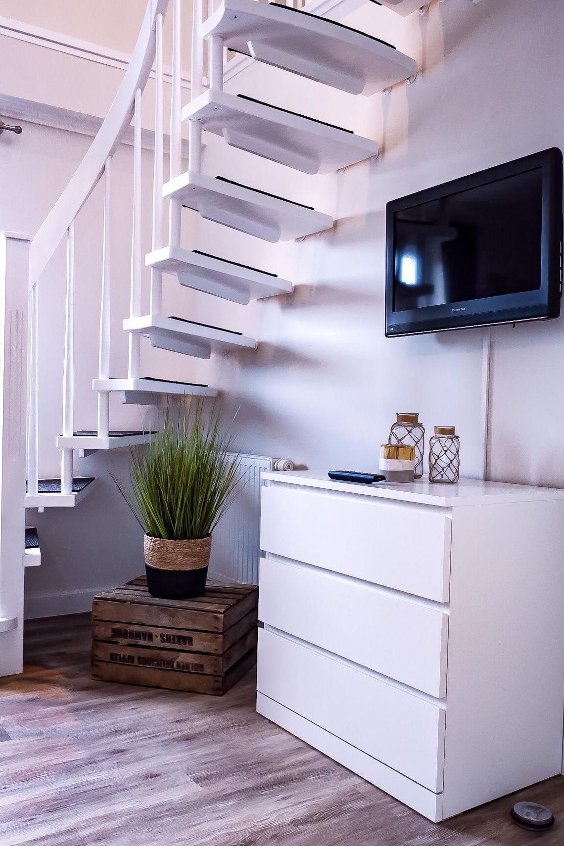 Der Wohnraum ist nordisch modern eingerichtet und führt Sie über eine offene Treppe ins Schlafzimmer, welches mit seinem gemütlichem Ambiente zum verweilen einlädt.