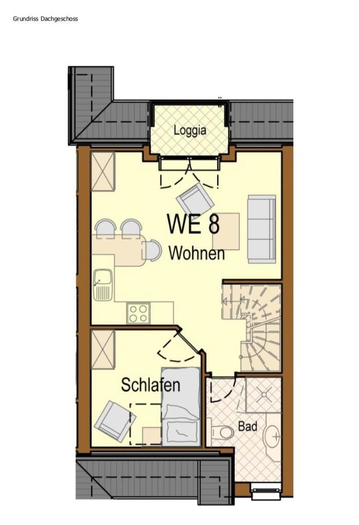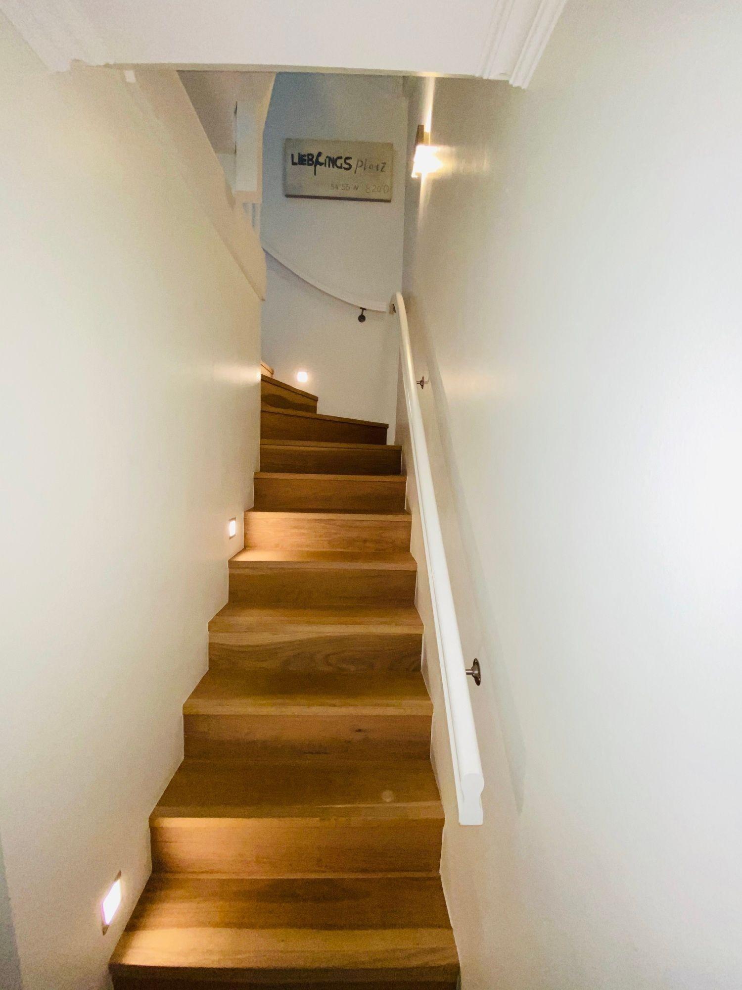 Abgehend vom Wohnraum erreichen Sie das moderne Duschbad sowie das Kinderschlafzimmer mit Etagenbett. Über die innenliegende Treppe gelangen Sie in das Hauptschlafzimmer. Direkt unter dem Dach gelegen sorgt der Schlafraum für besondere Gemütlichkeit und herrlich ruhige Nächte.
