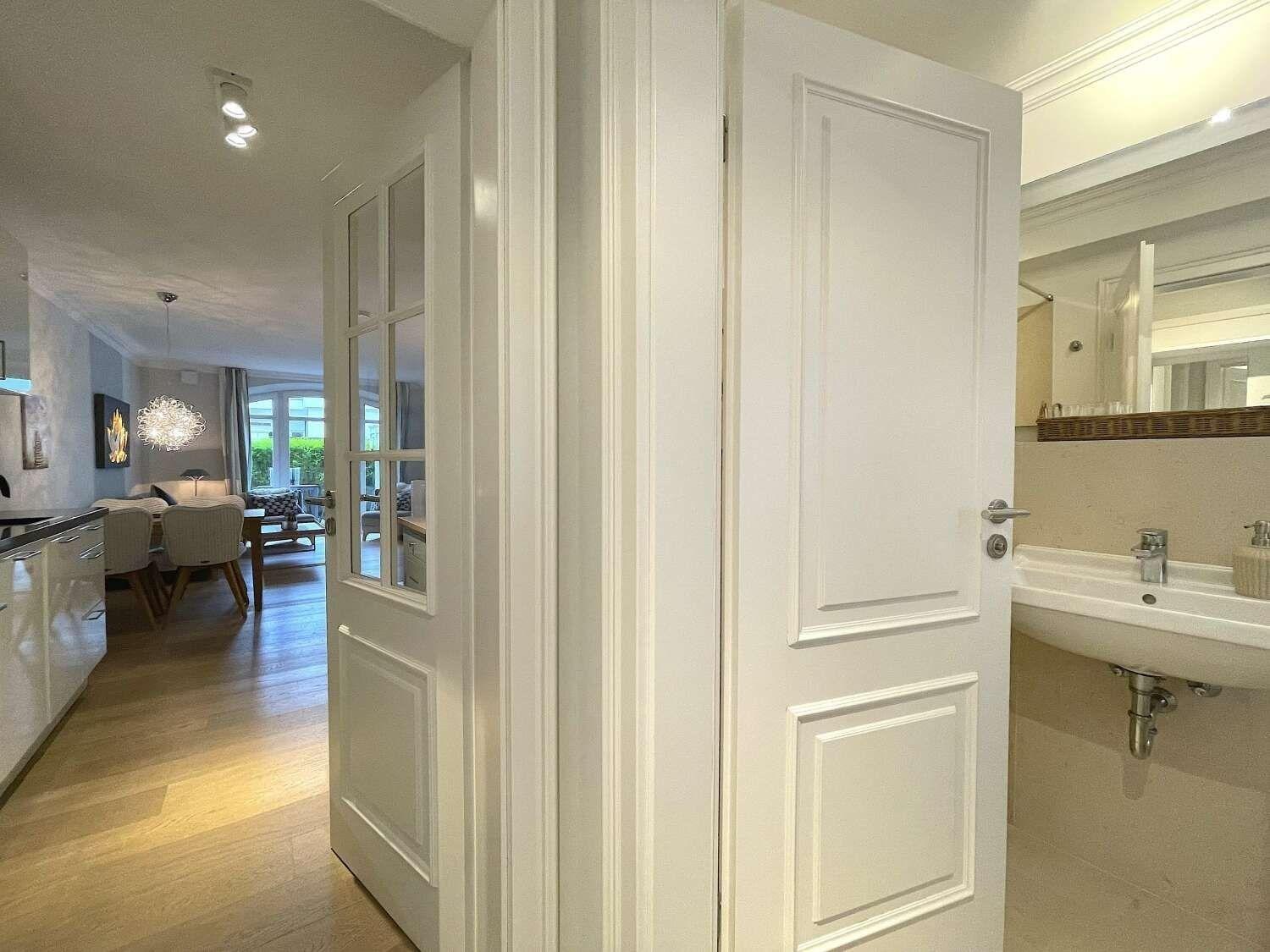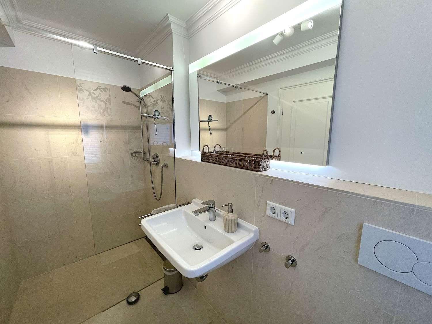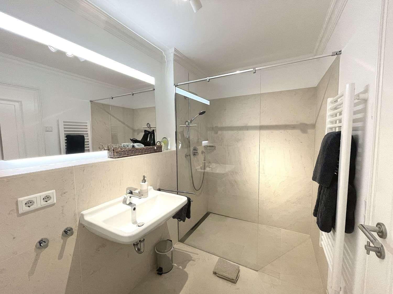 Die Wohnung hat einen eigenen Zugang am Haus. Durch den Flur, mit Zugang zum ersten von zwei Bädern, erreichen Sie den großzügigen offenen, hellen Wohnraum mit Einbauküche, TV und dem Sofa. Durch die interne Treppe erreichen Sie die beiden Schlafzimmer, und das vollwertige und großzügige zweite Bad im UG. Beide Schlafzimmer verfügen über hochwertige Einbauten und Betten. Die Wohnung wurde sehr hochwertig und liebevoll eingerichtet. Wir freuen uns, wenn es Ihnen bei uns gefällt.