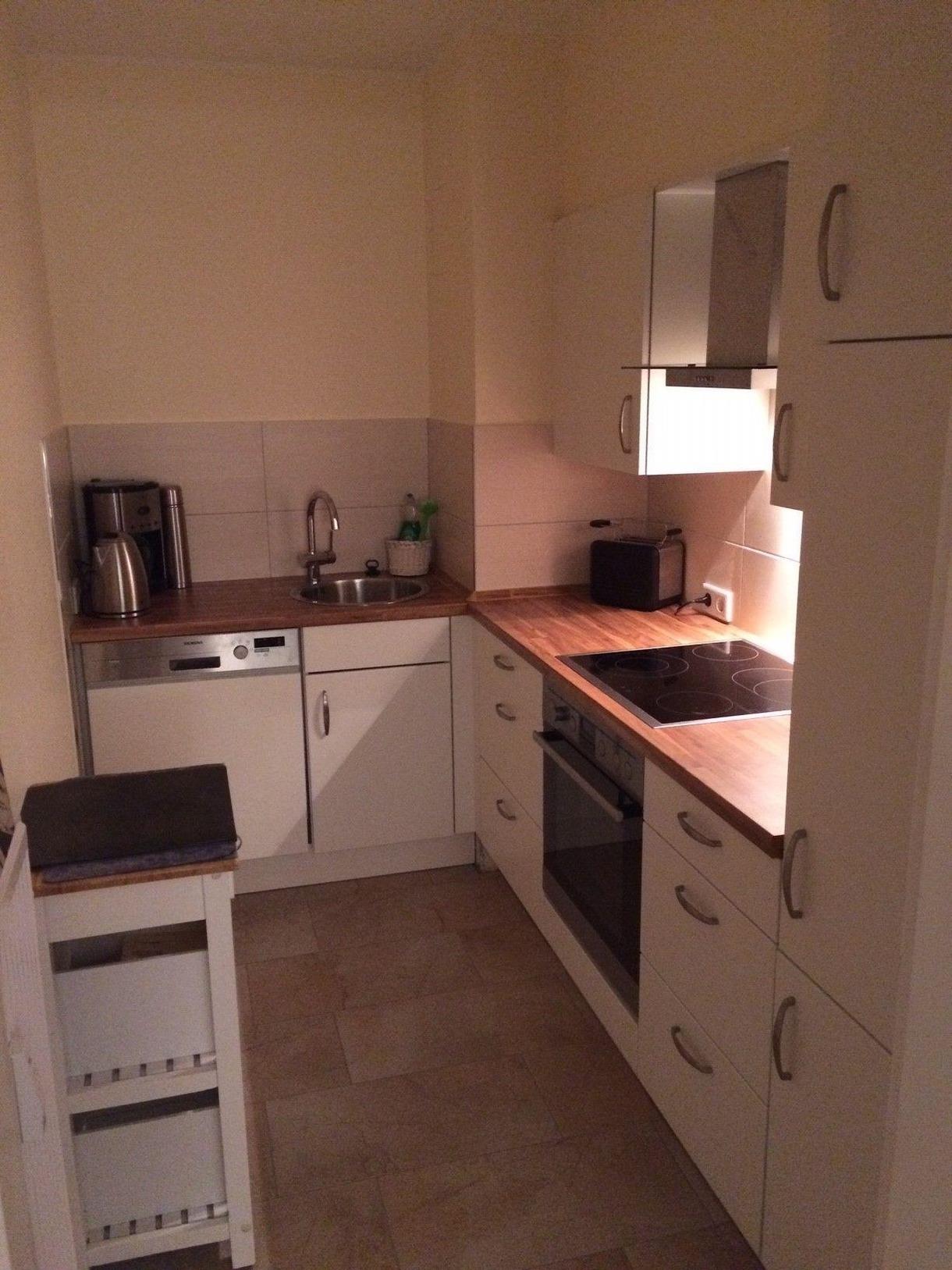 Darüber hinaus verfügt das Apartment über eine nagelneue Marken-Küche mit Ceran-Kochfeld, Backofen und Kühlschrank mit Gefrierfach. Ein hochwertiger Geschirrspüler, eine Kaffeemaschine sowie modernes Geschirr, Töpfe und Gläser gehören ebenso zur Ausstattung.
