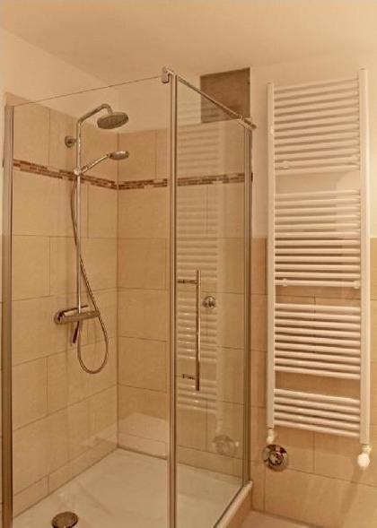 Der Flurbereich bietet Ihnen eine separate Garderobe. Das frisch renovierte Duschbad wird Sie besonders erfreuen: Es ist in warmen Sandtönen gehalten, und neben einem Handtuchwärmer mit einer großen, fast ebenerdigen Dusche (Absatz ca. 3 cm) ausgestattet.