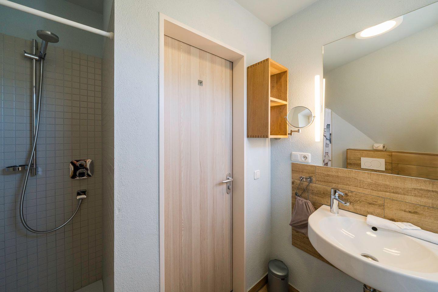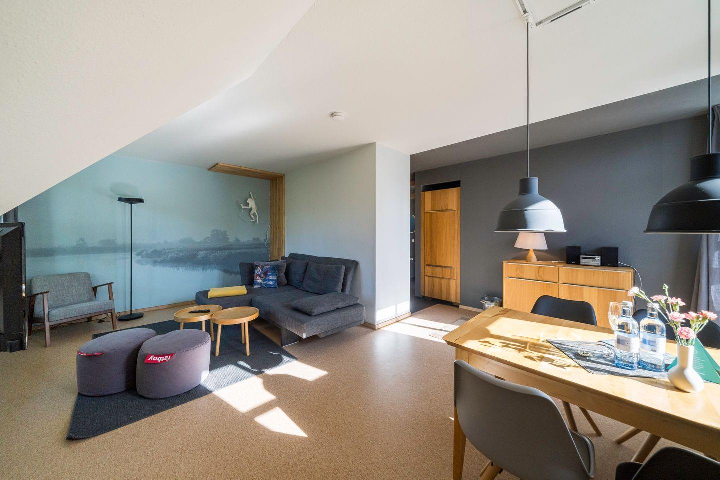 Die Ferienwohnung im ersten Stock verbindet modernen skandinavischen Purismus mit einem harmonischen Farbkonzept, das eine warme und einladende Atmosphäre schafft. Mit einem Schlafzimmer, dass über getrennte Betten verfügt, einem hellen Wohnzimmer mit Schlafcouch, einer offenen Küchenzeile und einem modernen Bad bietet sie eine durchdachte Raumaufteilung, die ideal für erholsame Urlaubstage ist. Das Highlight der Wohnung ist der besondere Balkon in Storchennestoptik, der über einen charmanten Steg erreichbar ist. Von hier aus eröffnet sich ein traumhafter Blick auf die weiten Wiesen der Umgebung. Abends sorgt das sanfte Flackern des Leuchtturms am Horizont für eine ganz besondere Stimmung – ein Ort, um die Natur zu genießen und den Alltag hinter sich zu lassen.