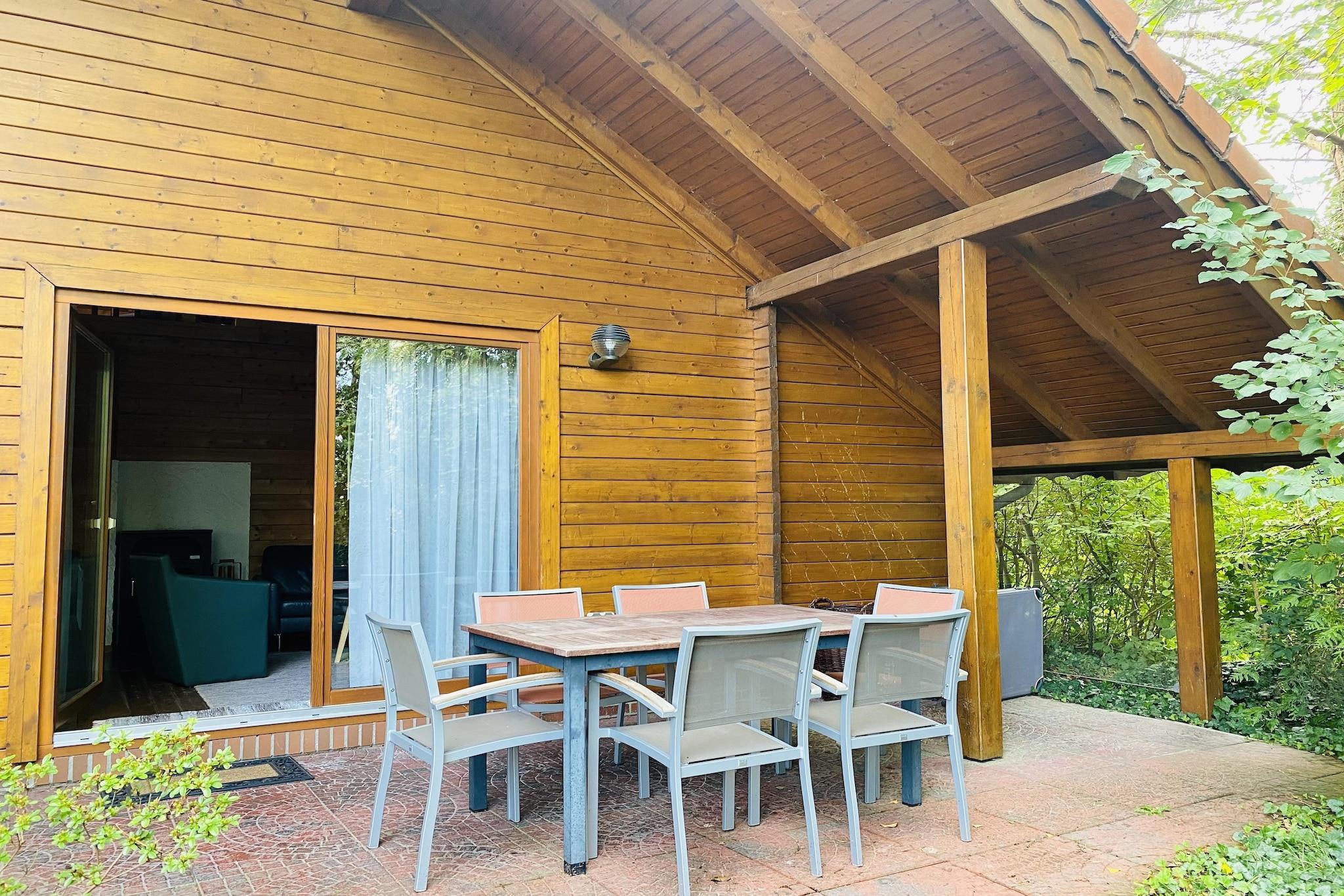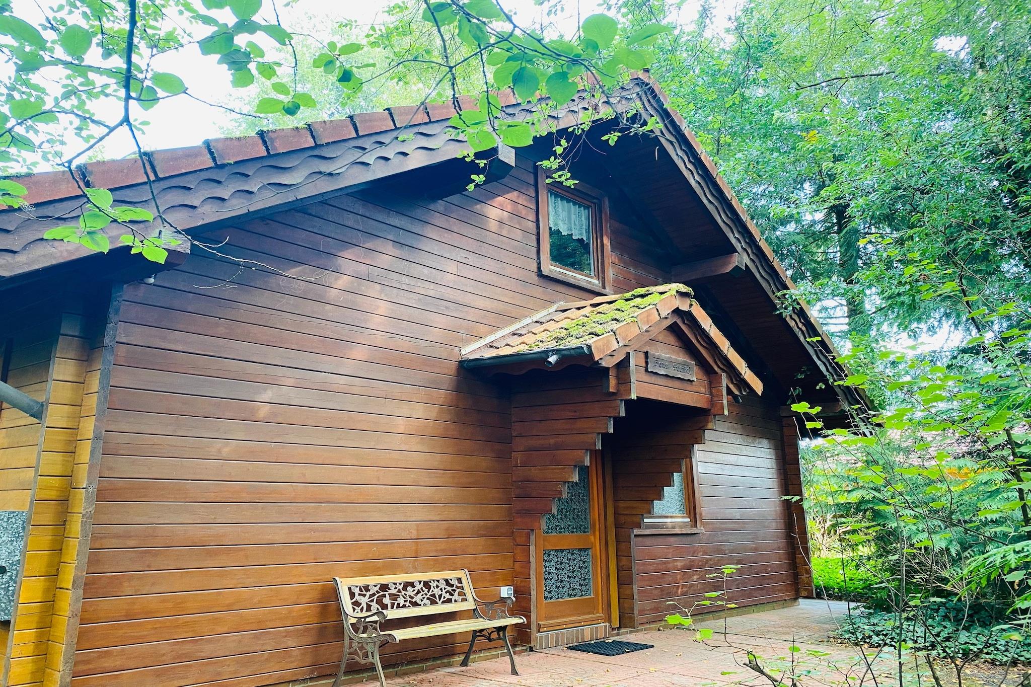 Rustikales Blockhaus Svenja in Wiefelstede mit Sauna, Seeblick und Zugang zu exklusiven Badeseen für erholsame Familienurlaube.