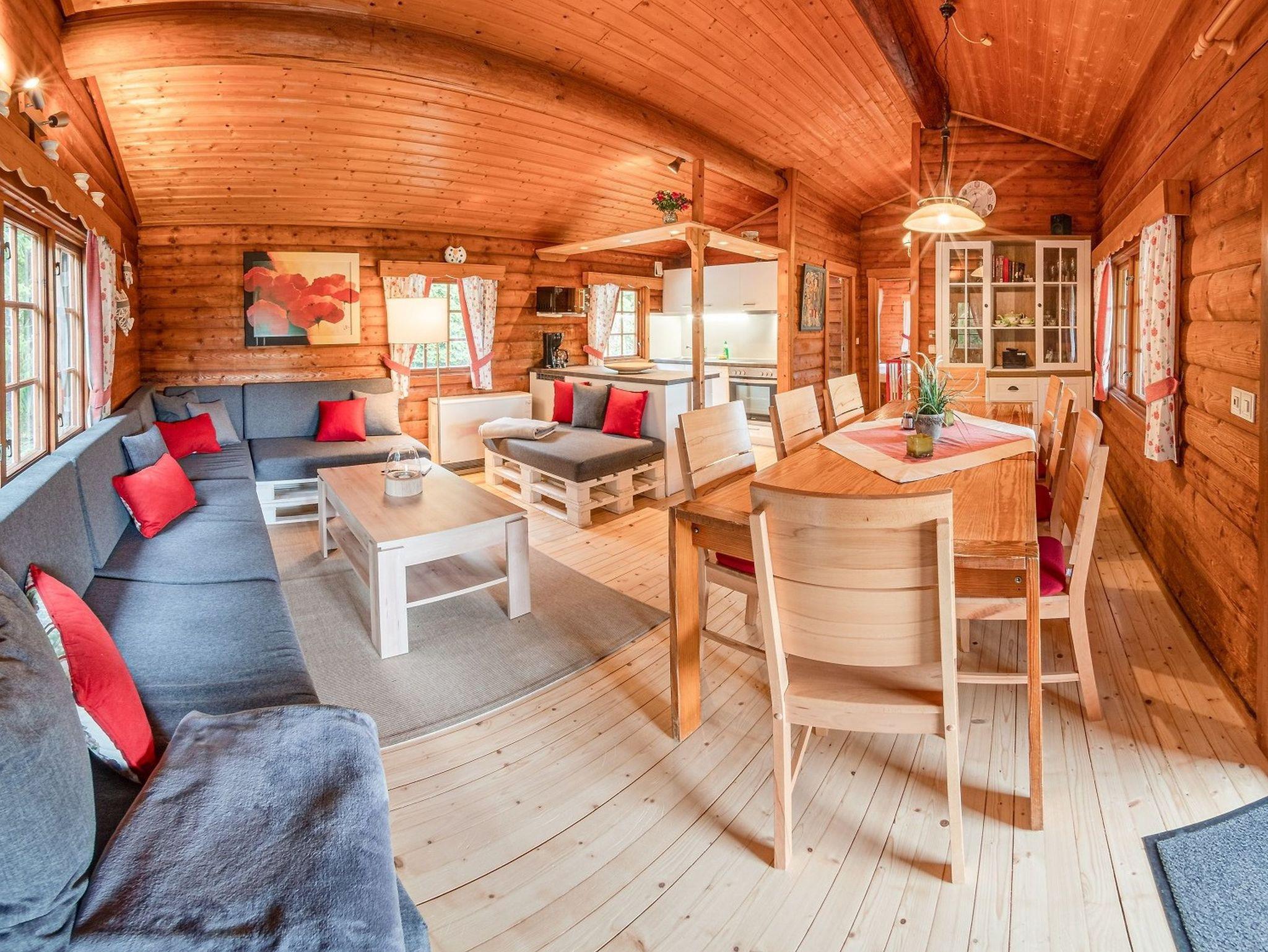 Das Wohnzimmer verfügt über einen Flachbild-Sat-TV, DVD-Player, Stereoanlage mit CD-Player und einer gemütlichen Essecke mit Blick in die Landschaft. Der komplett eingerichtete Küchenbereich ist ausgestattet mit Spülmaschine, Herd mit Cerankochfeld und Backofen, Kühlschrank mit Gefrierfach, Kaffeemaschine, Toaster, Mikrowelle, Wasserkocher etc. und ausreichend Geschirr für 8 Personen.