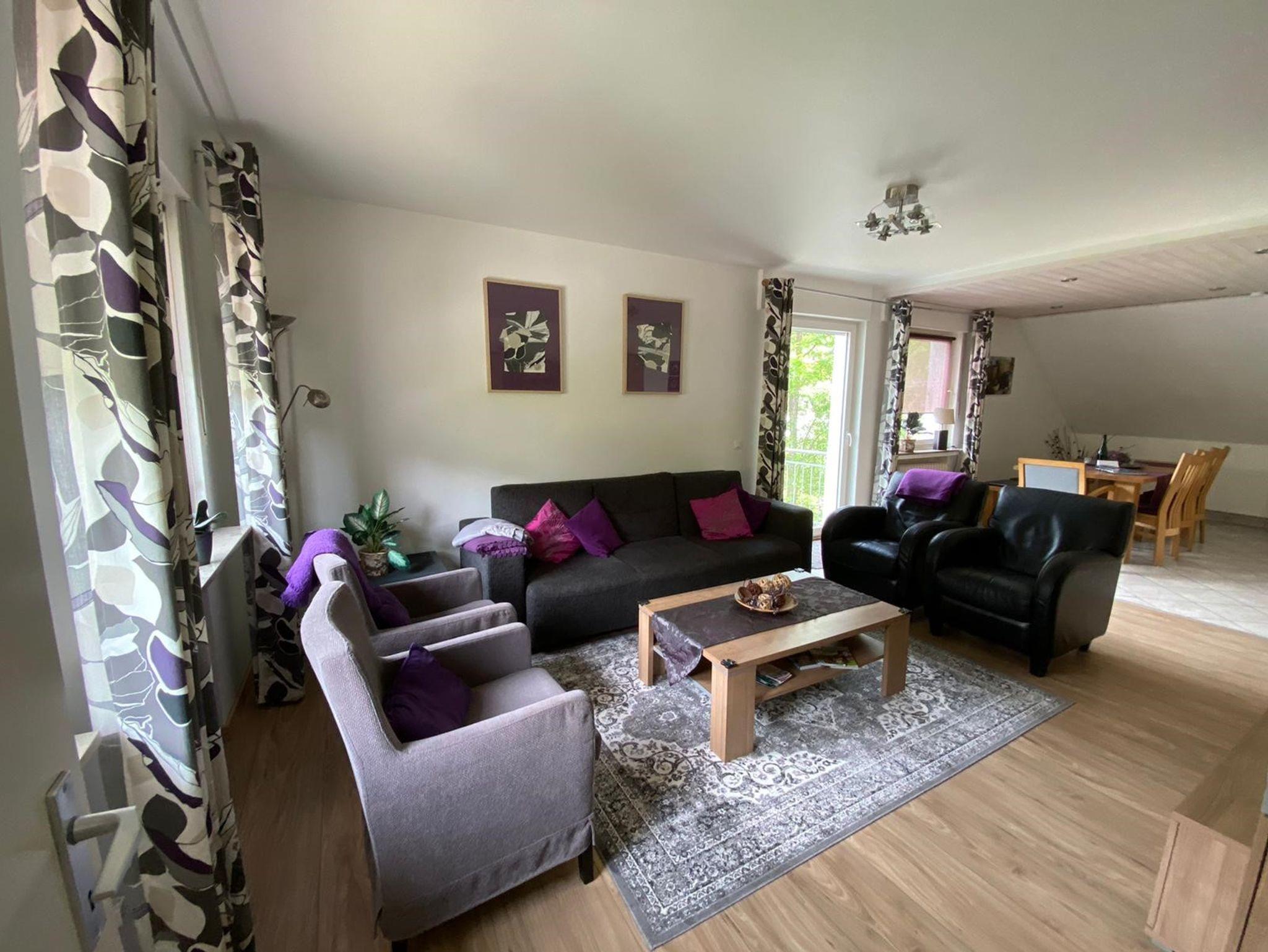 Wohnzimmer mit voll ausgestattete Essküche (Geschirrspüler, Kühlschrank, Gefrierschrank, Backofen, Mikrowelle, Senseo-Maschine, Filterkaffeemaschine, Wasserkocher, Toaster) und Balkon; Smart-Fernsehen (Streaming-Funktionen); DAB-Radio, Badezimmer: Dusche, Badewanne, Waschbecken, Toilette; 3 Schlafzimmer: 1x Schlafzimmer mit Doppelbett, 2x Schlafzimmer (beides für max 4 Personen) mit Doppelbett (2*1 Boxspring) und Ausziehbett und Waschbecke; Sep. Toilette extra; nutzung Garten und Grill. Auf Wunsch steht auch ein Schlafsofa für 2 Personen zur Verfügung