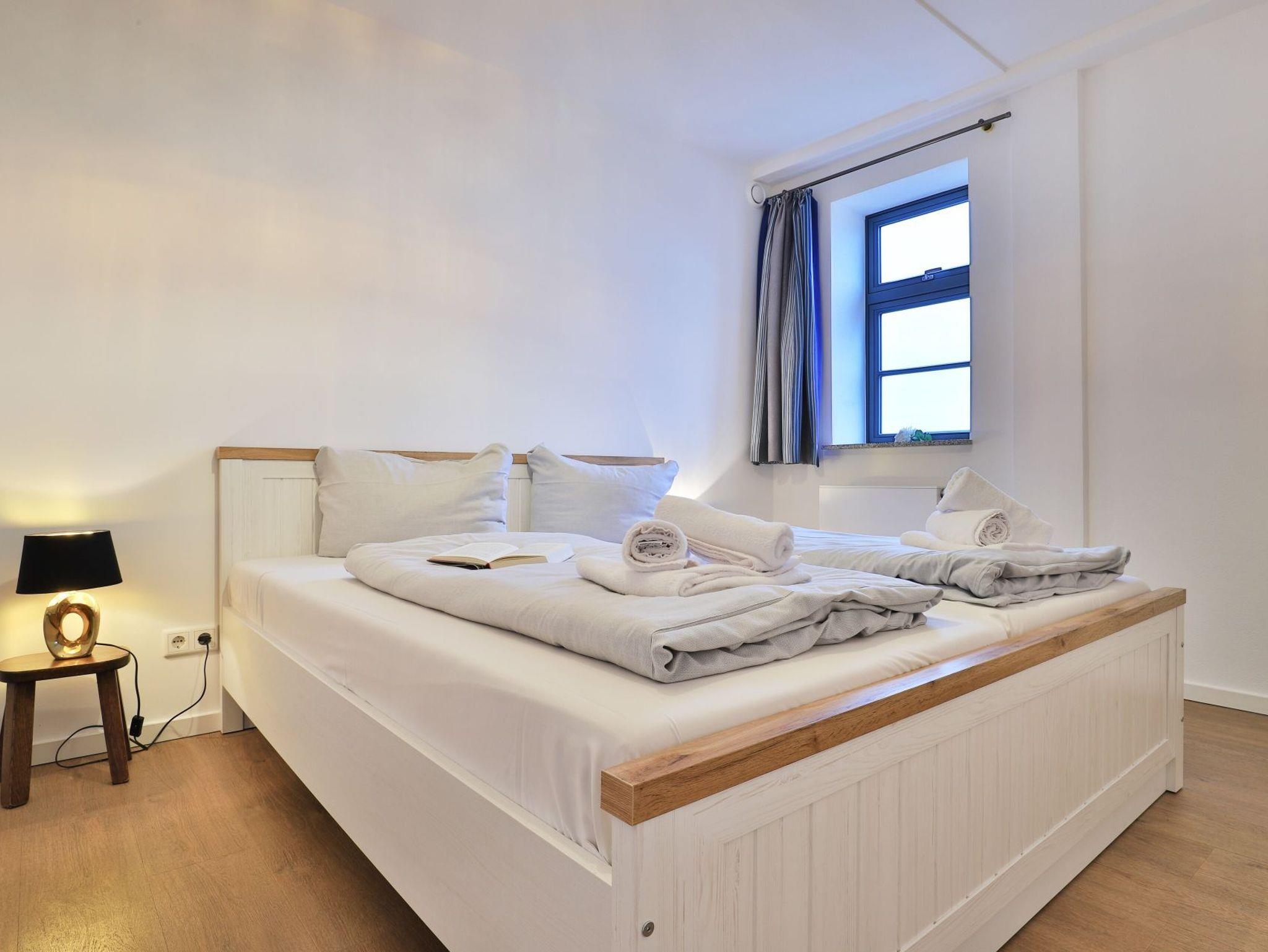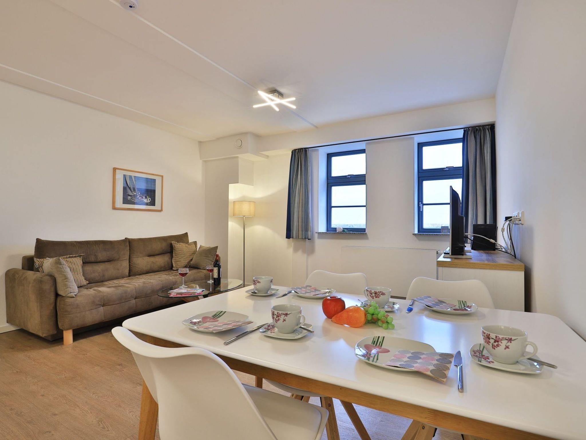 Exklusives Appartement mit Hafenblick im Ohlerich Speicher in Wismar, komfortabel und modern eingerichtet für erholsamen Urlaub.
