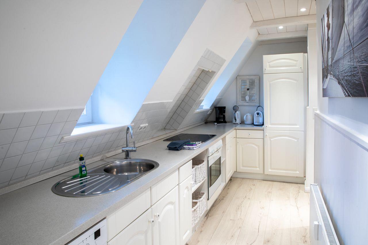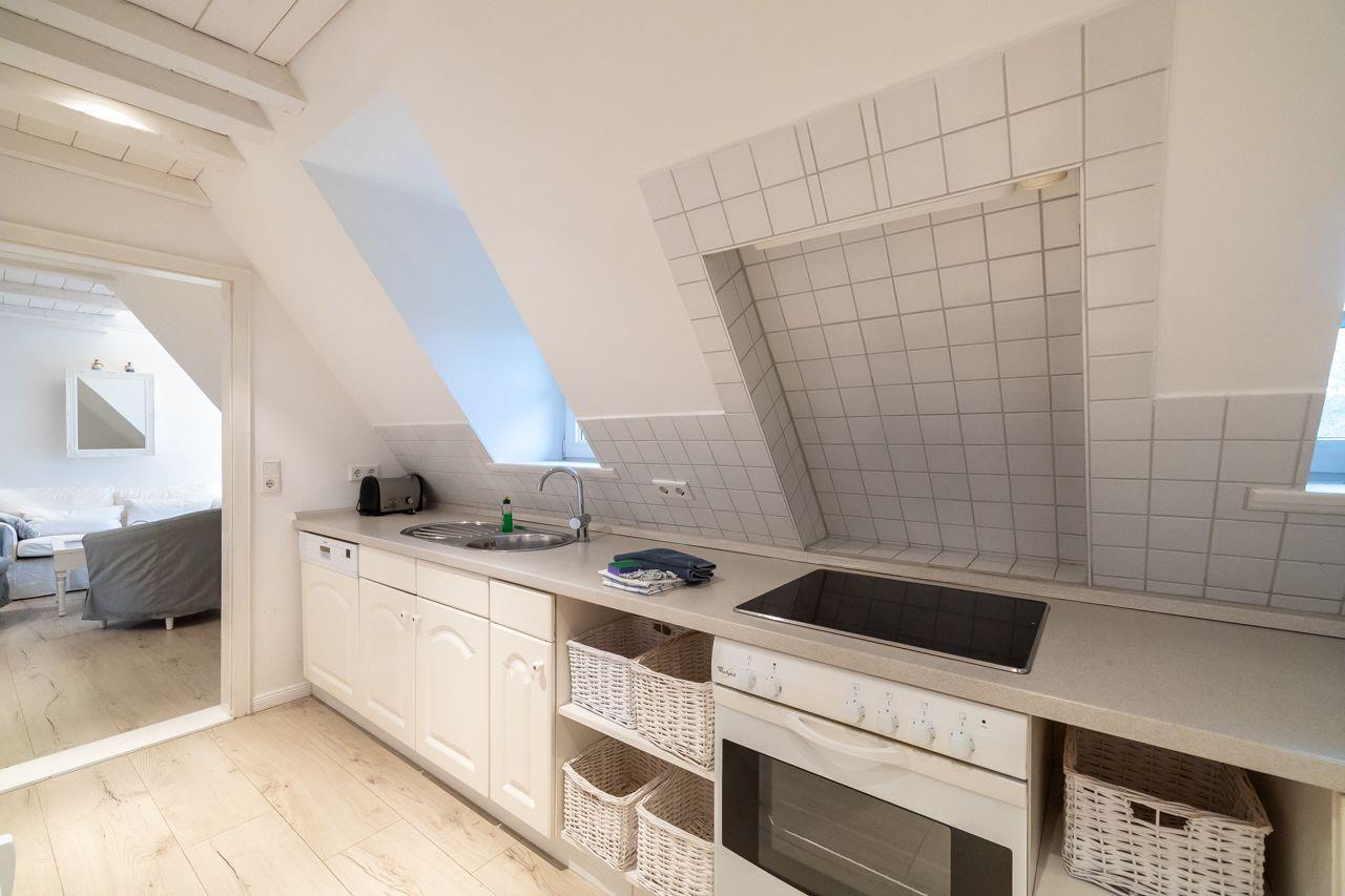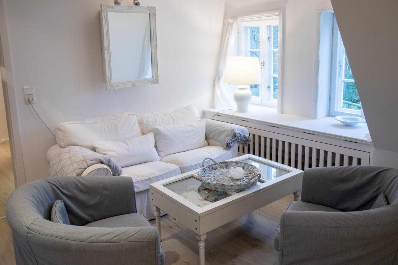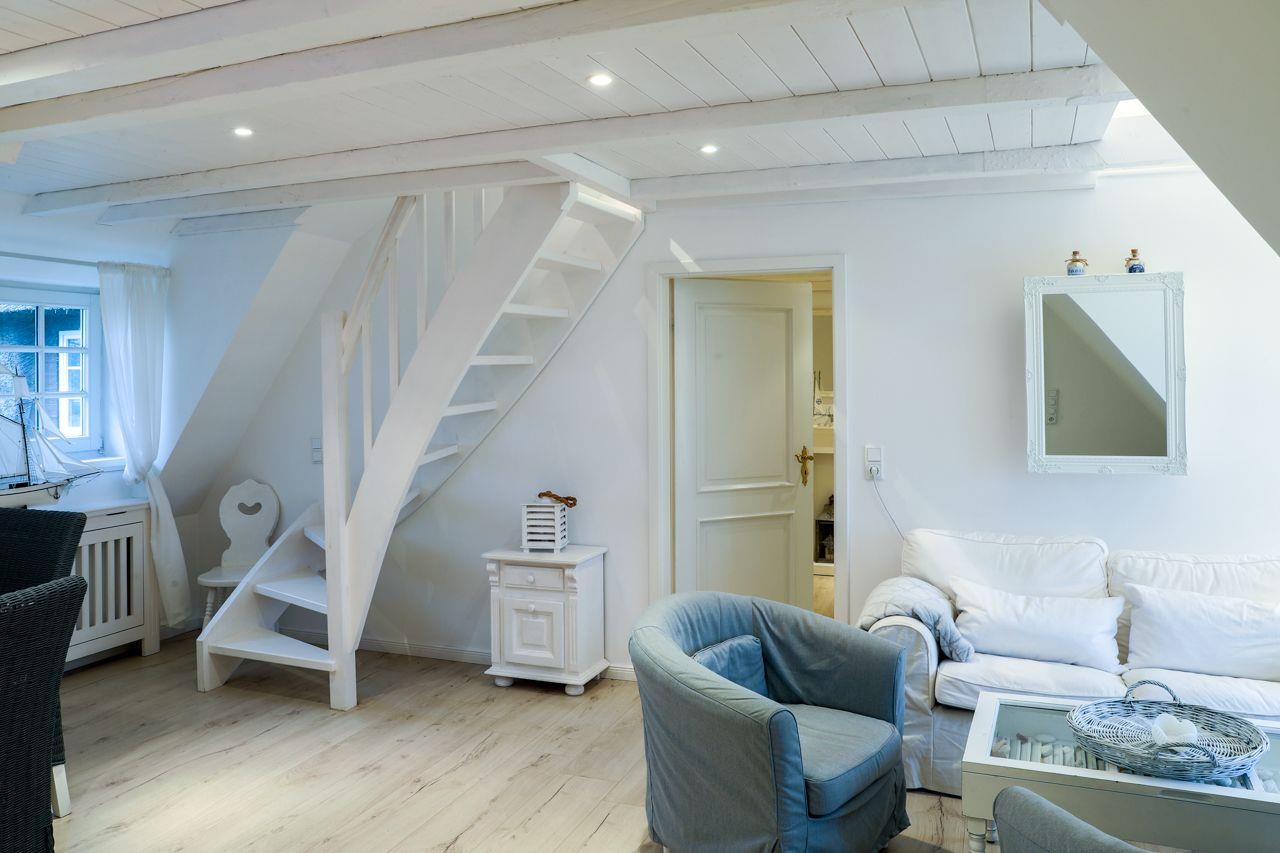 Die Ferienwohnung Silbermöwe wurde im Jahr 2012 aufwendig renoviert und restauriert. Im großen Wohn-Esszimmer werden Sie schöne Stunden verbringen. Dazu tragen die Holzdielen sowie die weiße Holzdecke bei.