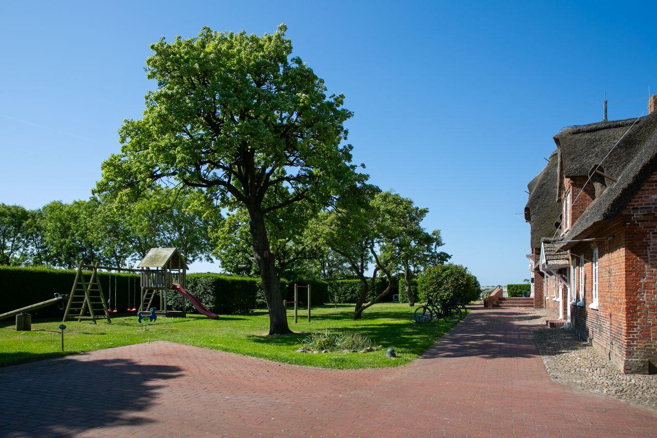 Historisches Reetdachgutshof Herrenhof mit modern renovierter Ferienwohnung und eigenem Garten in Wrixum.