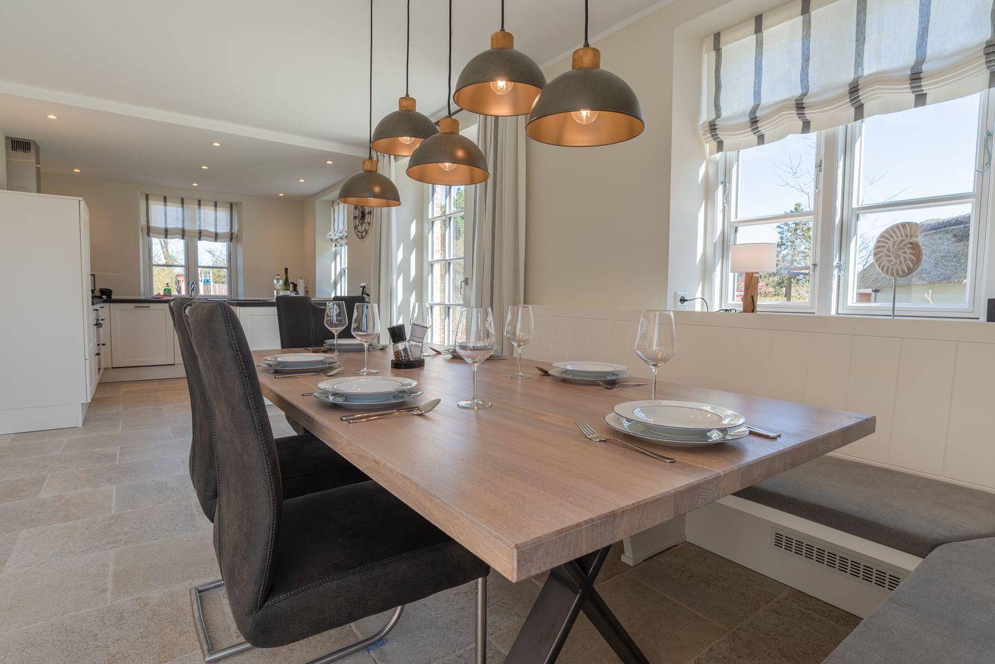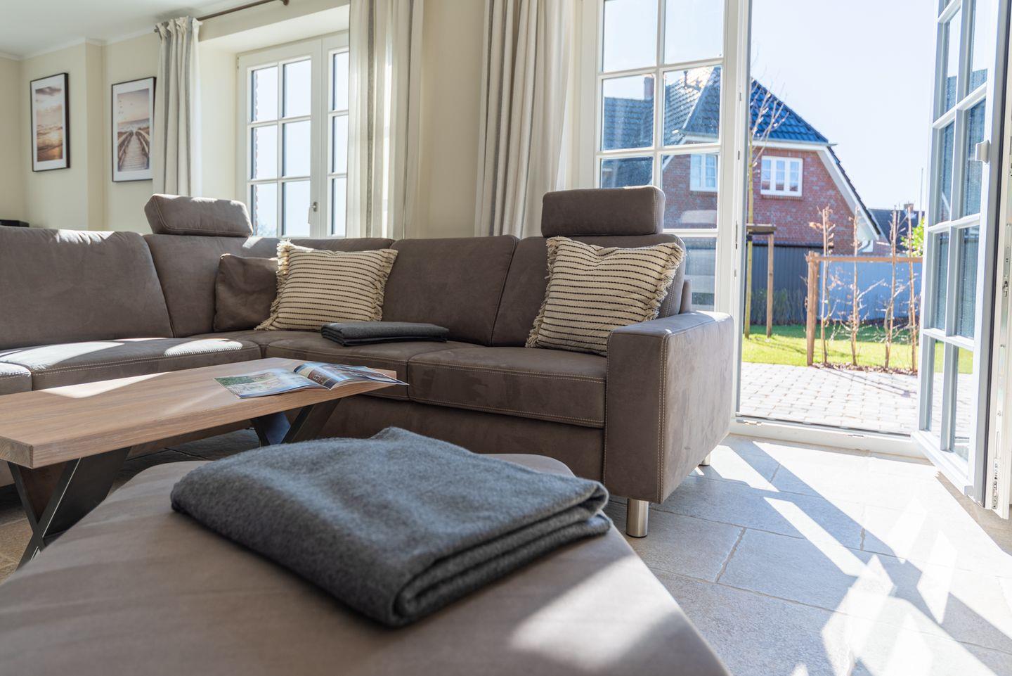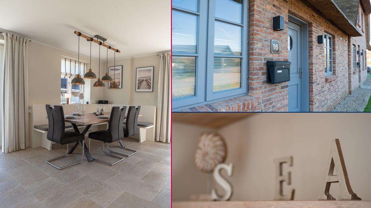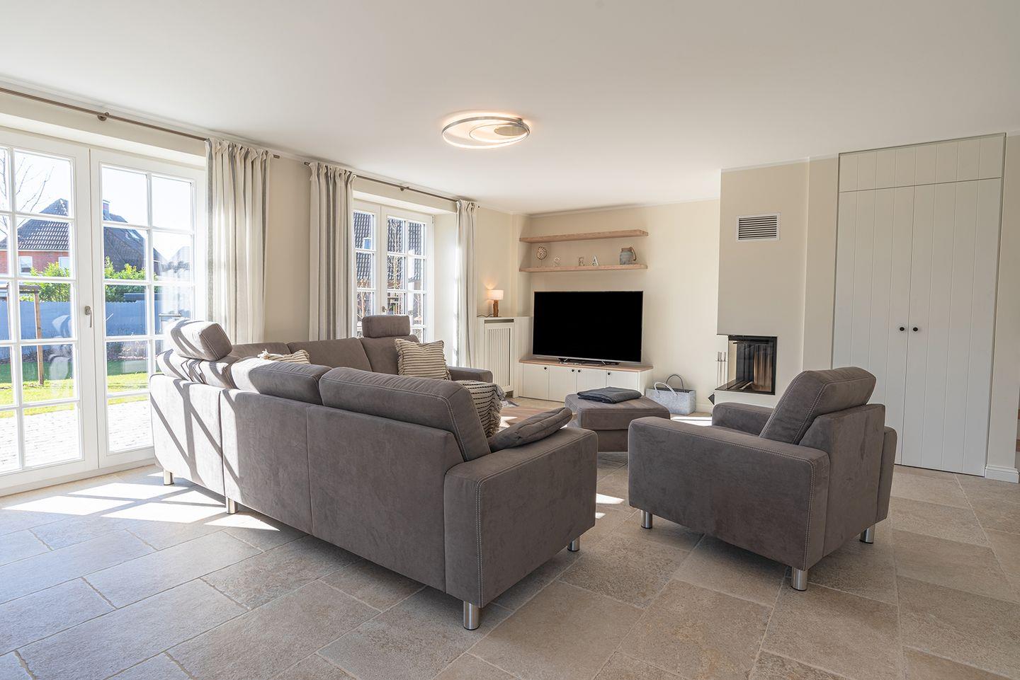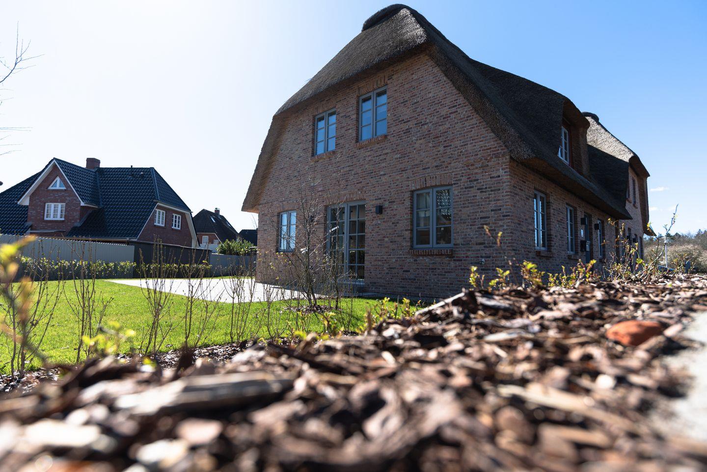 Komfortable, reetgedeckte Ferienhaushälfte mit Sauna, Kamin und Terrasse in Wrixum für erholsame Tage.