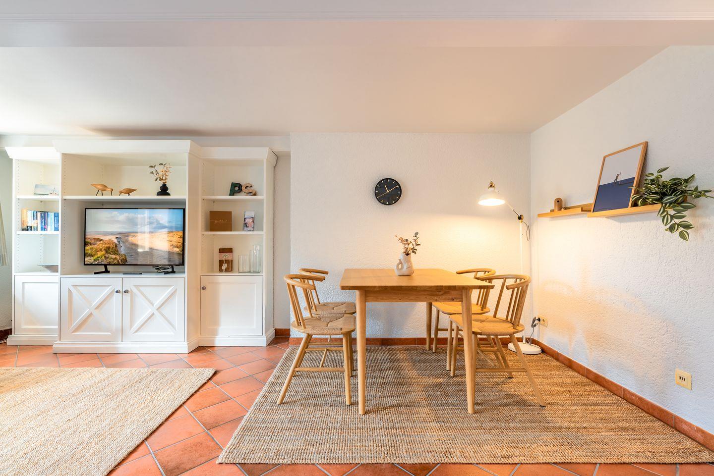 Die Wohnung verfügt über ein helles Wohnzimmer, eine voll ausgestattete Küche und ein komfortables Schlafzimmer, in dem Sie nach einem erlebnisreichen Tag zur Ruhe kommen können. Der umzäunte Garten lädt dazu ein, die frische Nordseeluft zu genießen und mit Ihrem Hund ausgedehnte Spaziergänge zu unternehmen.