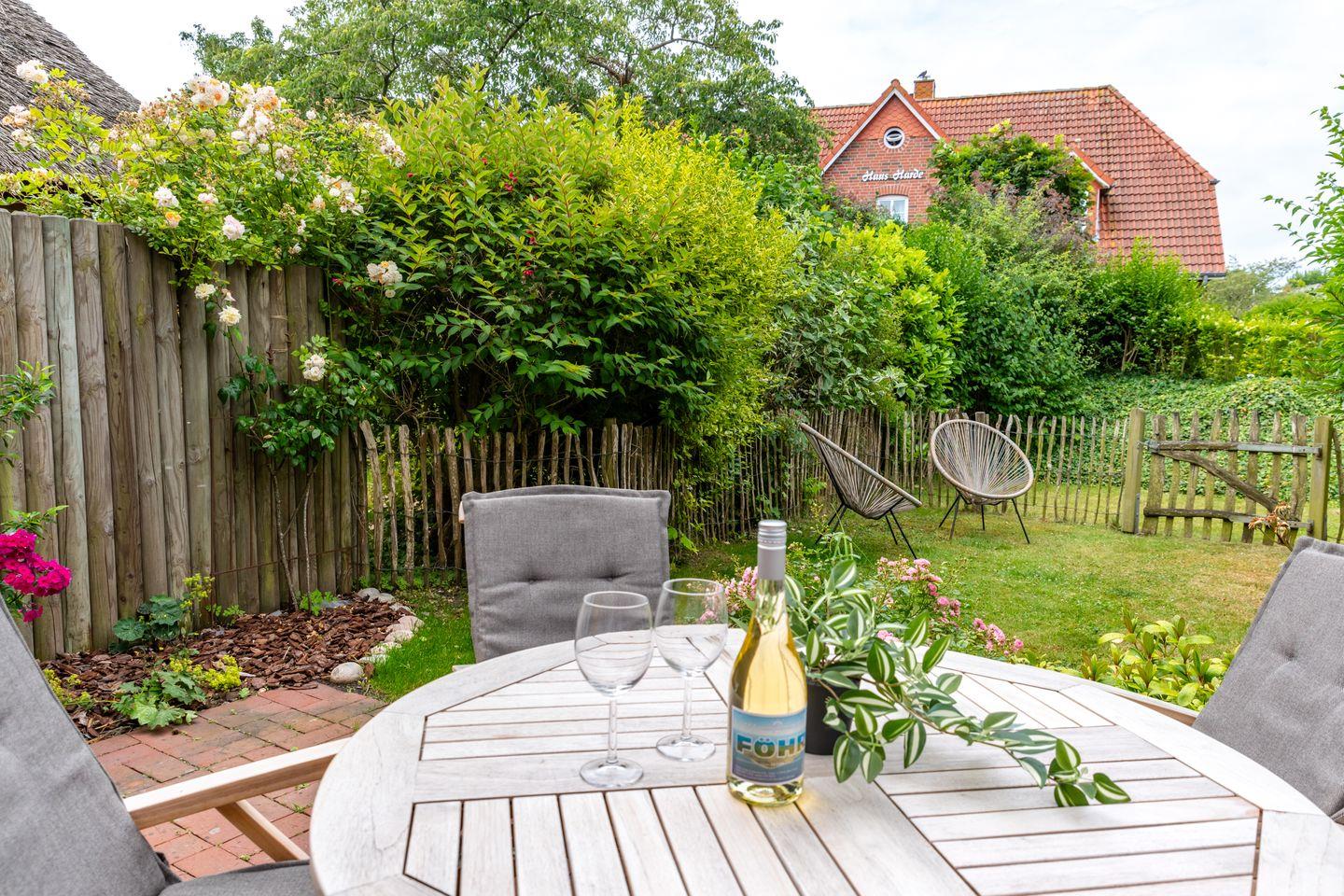 Ferienwohnung unter Reet mit Garten und Terrasse und Sauna.