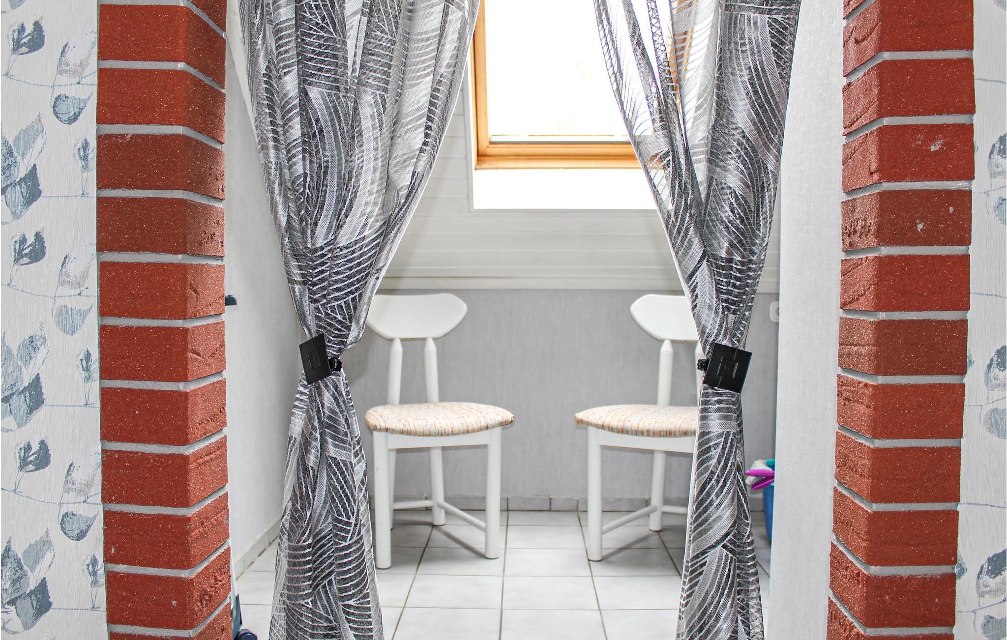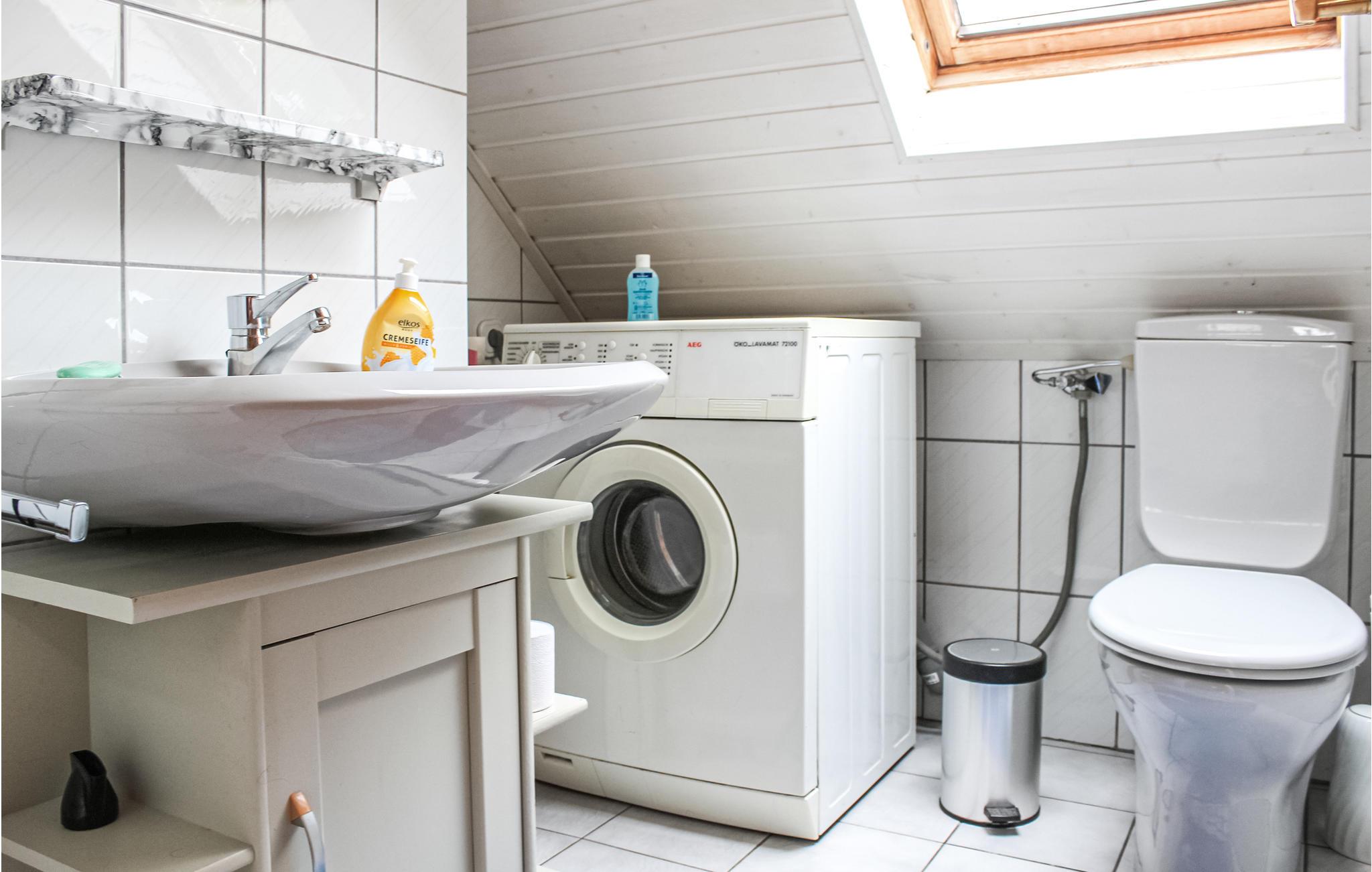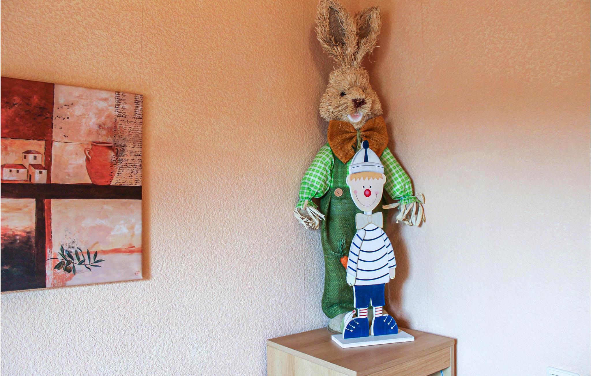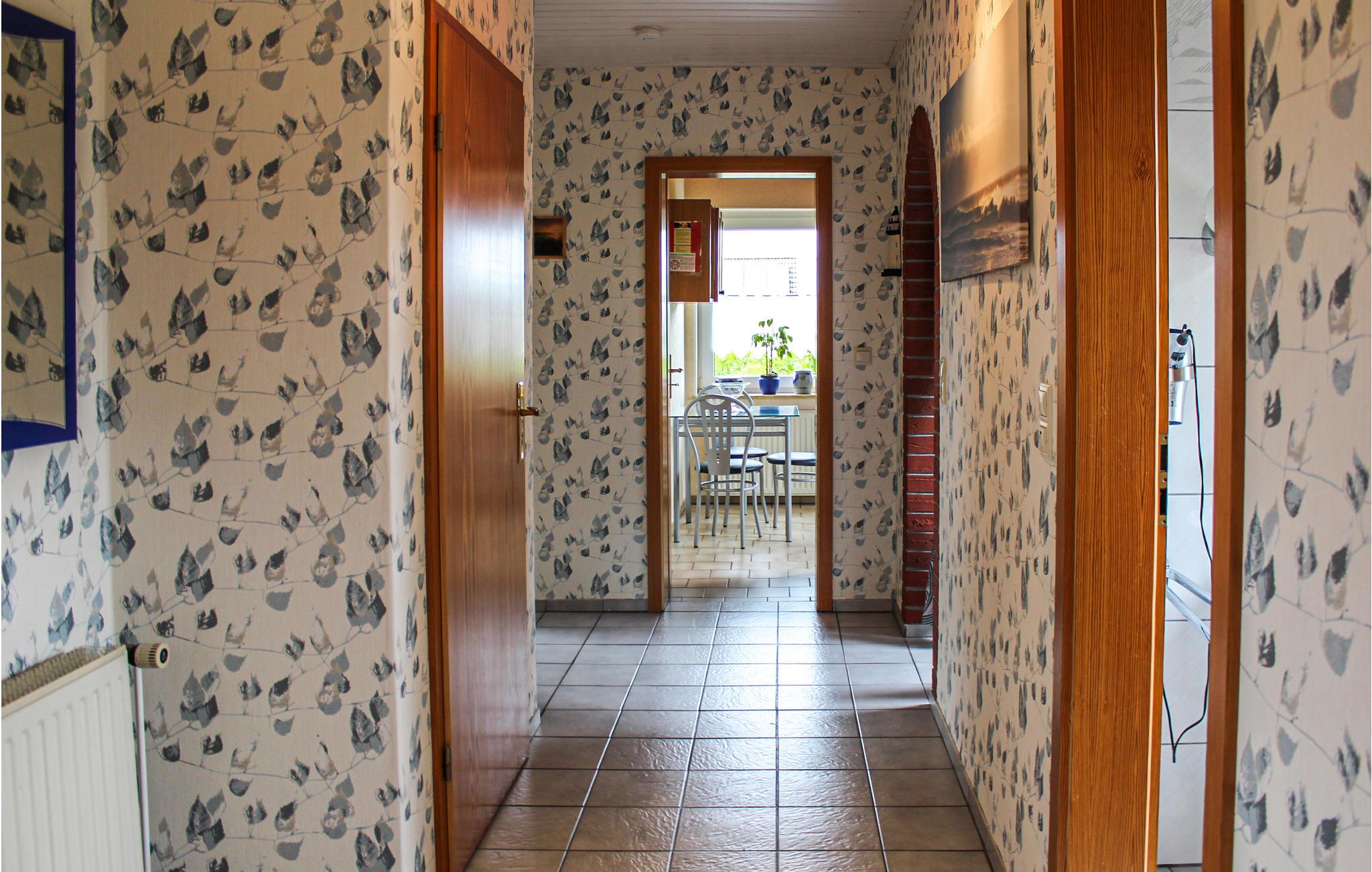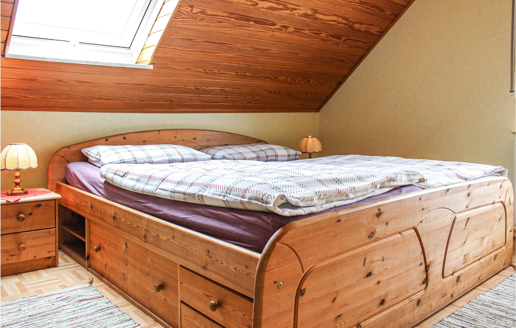Die Wohnung befindet sich im 1. Obergeschoss des Wohnhauses und verfügt über Dachschrägen. Das Elternschlafzimmer ist mit einem Doppelbett sowie einem Babybett ausgestattet, im zweiten Schlafzimmer befindet sich ein Einzelbett. Im geräumigen Wohnraum sind bis zu vier weitere Schlafplätze vorhanden. Das Badezimmer ist mit Waschmaschine und Badewanne ausgestattet.
