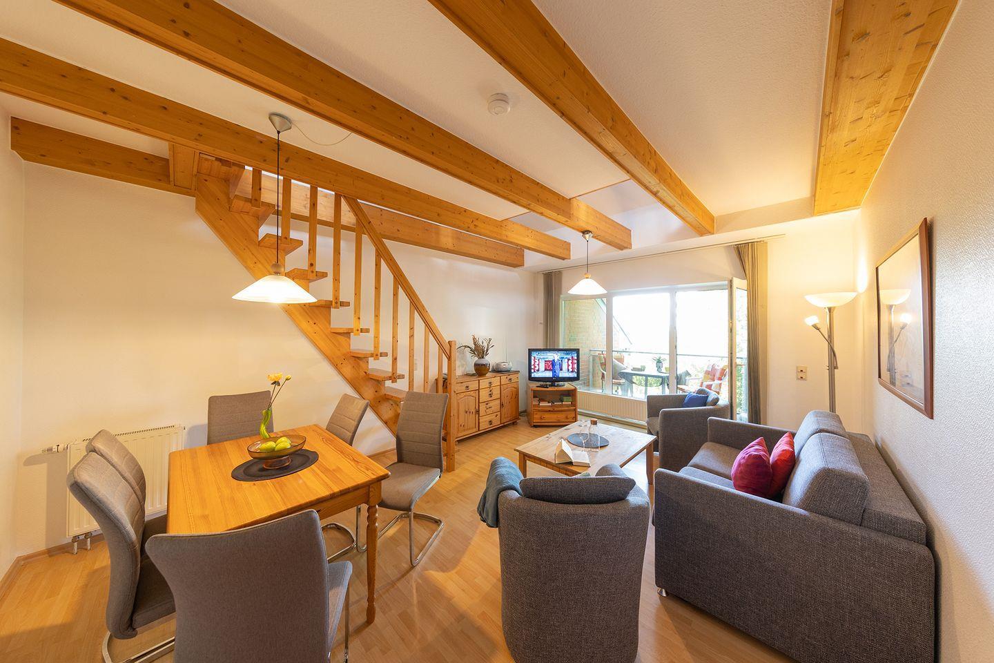 Helle Maisonettewohnung mit Loggia und Nordseeblick im Cuxlandpark Wremen, ideal für Familien und bis zu 6 Personen.