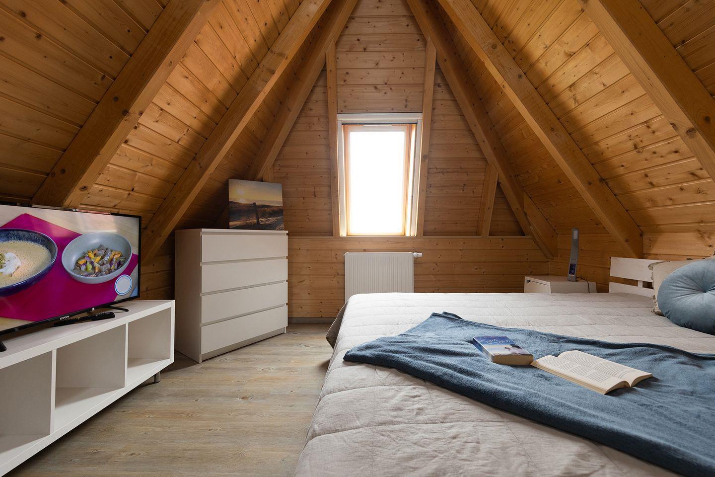 Oben befinden sich das Elternschlafzimmer mit Doppelbett, ein weiteres Kinderzimmer mit getrennten Betten sowie ein zusätzliches WC. Fliesen und Laminat sorgen für ein pflegeleichtes Zuhause auf Zeit, die zentrale Gastherme für angenehme Wärme. Kinderbett und Hochstuhl sind vorhanden.