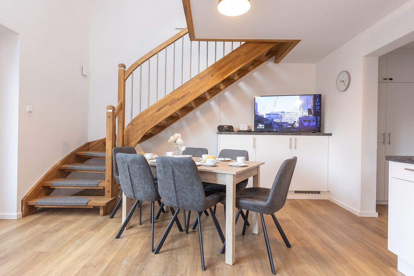 Gemütliches Ferienreihenhaus in Wremen, strandnah, mit Fußbodenheizung und vielseitiger Ausstattung für Familienkomfort.