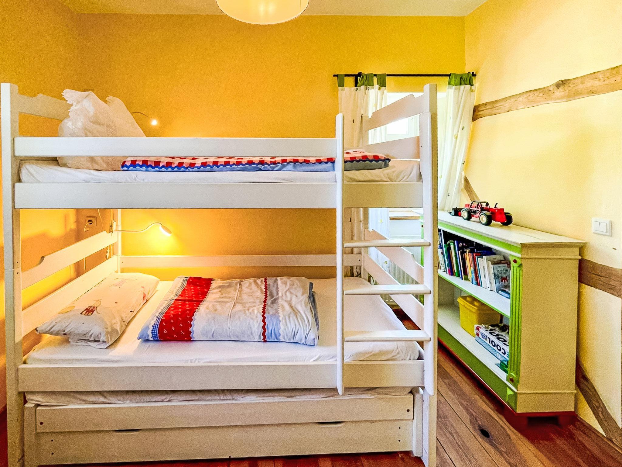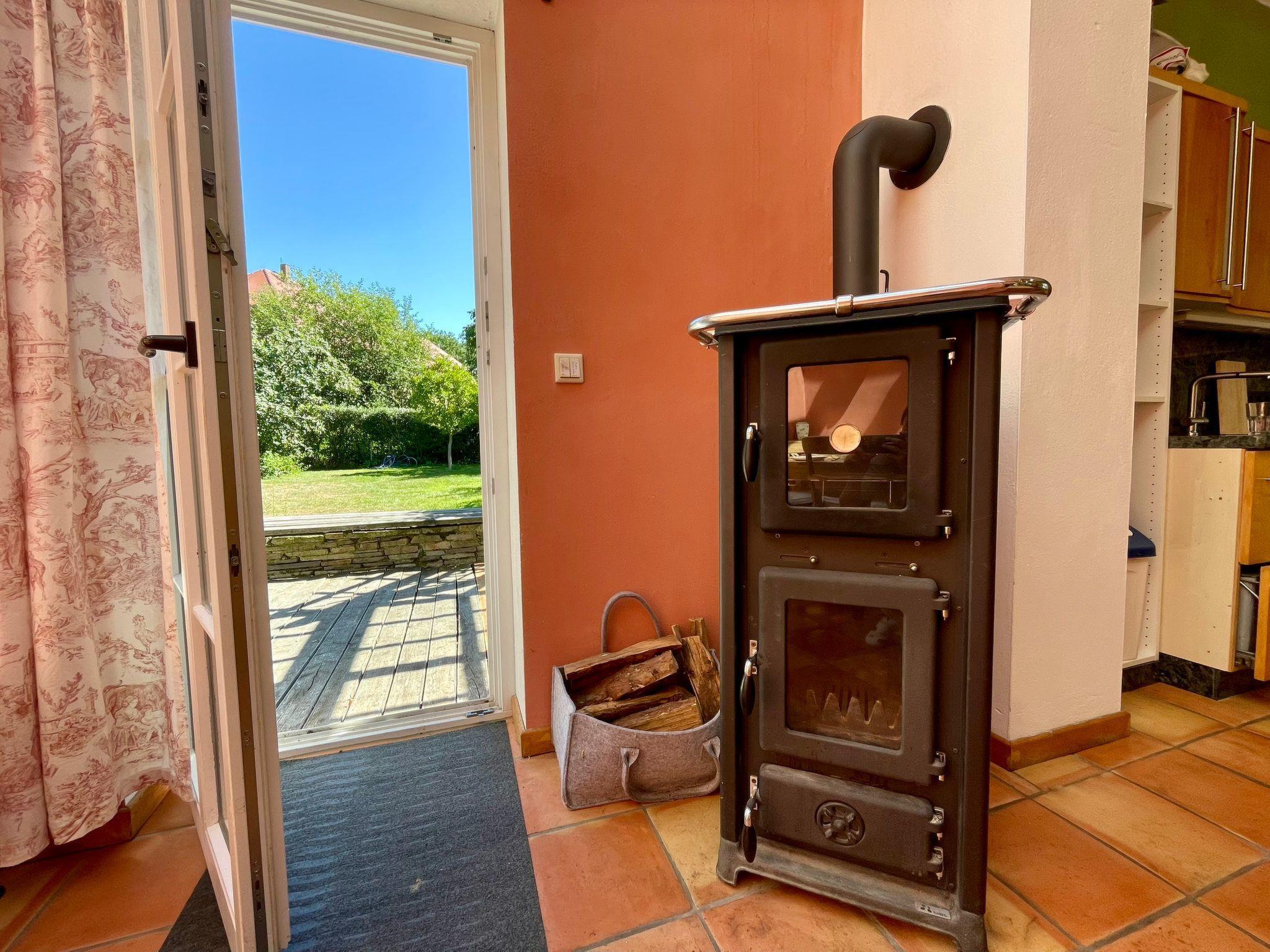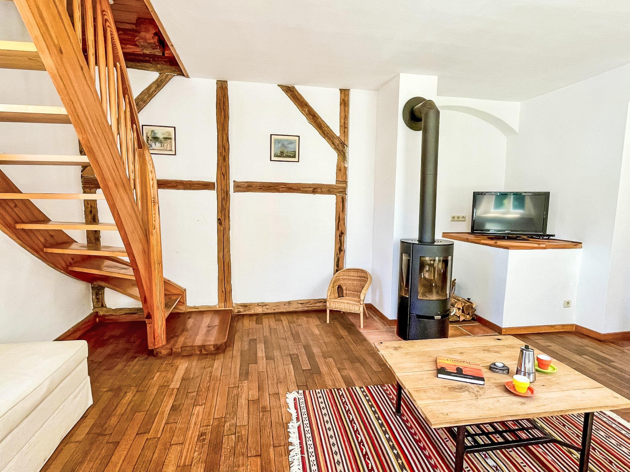 "Gärtnerhaus", 3-Zimmer-Haus 120 m2 auf 2 Stockwerken, im Erdgeschoss. Geschmackvoll und gemütlich eingerichtet: Wohnzimmer mit Schwedenofen und Kabel-TV (Flachbildschirm). Offene Küche (Backofen, Geschirrspüler, 4 Glaskeramikplatten, elektrische Kaffeemaschine, Kochinsel) mit Schwedenofen und Essecke. Ausgang zum Garten, zur Terrasse. Sep. WC, Doppelwaschbecken. Obergeschoss: 1 Doppelzimmer (200 cm, Länge 220 cm). 1 Kinderzimmer mit 1 x 2 Etagenbetten (80 cm, Länge 180 cm). Bad/Dusche/WC, Doppelwaschbecken. Komfortable Einrichtung im Landhausstil. Terrassenmöbel, Gartengrill, Liegestühle (2). Zur Verfügung: Waschmaschine, Kinderhochstuhl. Internet (Wireless LAN, gratis). Bitte beachten: Nichtraucher-Haus. Bei Belegung mit 4 Erwachsenen stehen im ausgebauten Spitzboden (steile Leiter) 2 Betten (90 cm, Länge 200 cm) zur Verfügung.