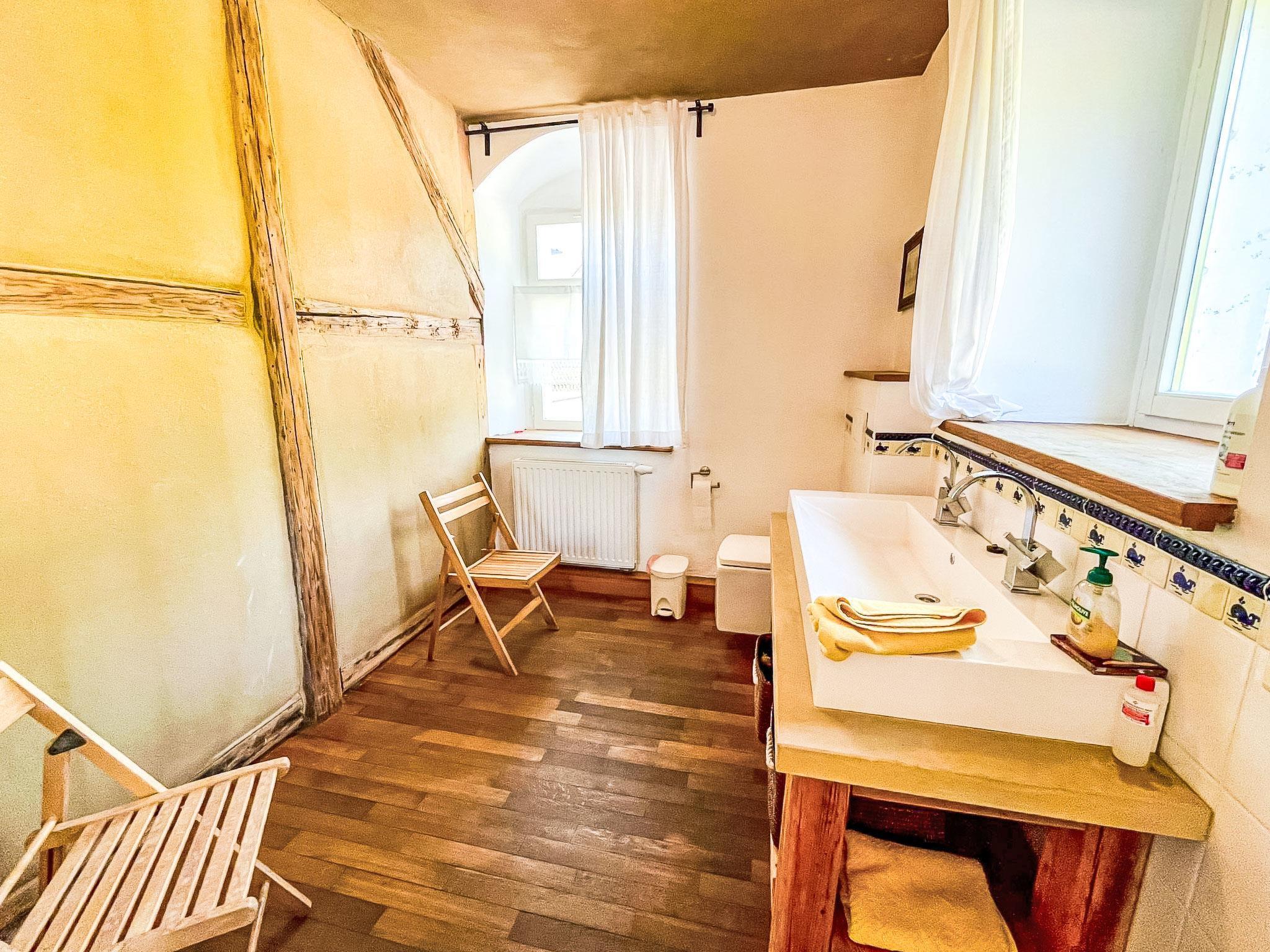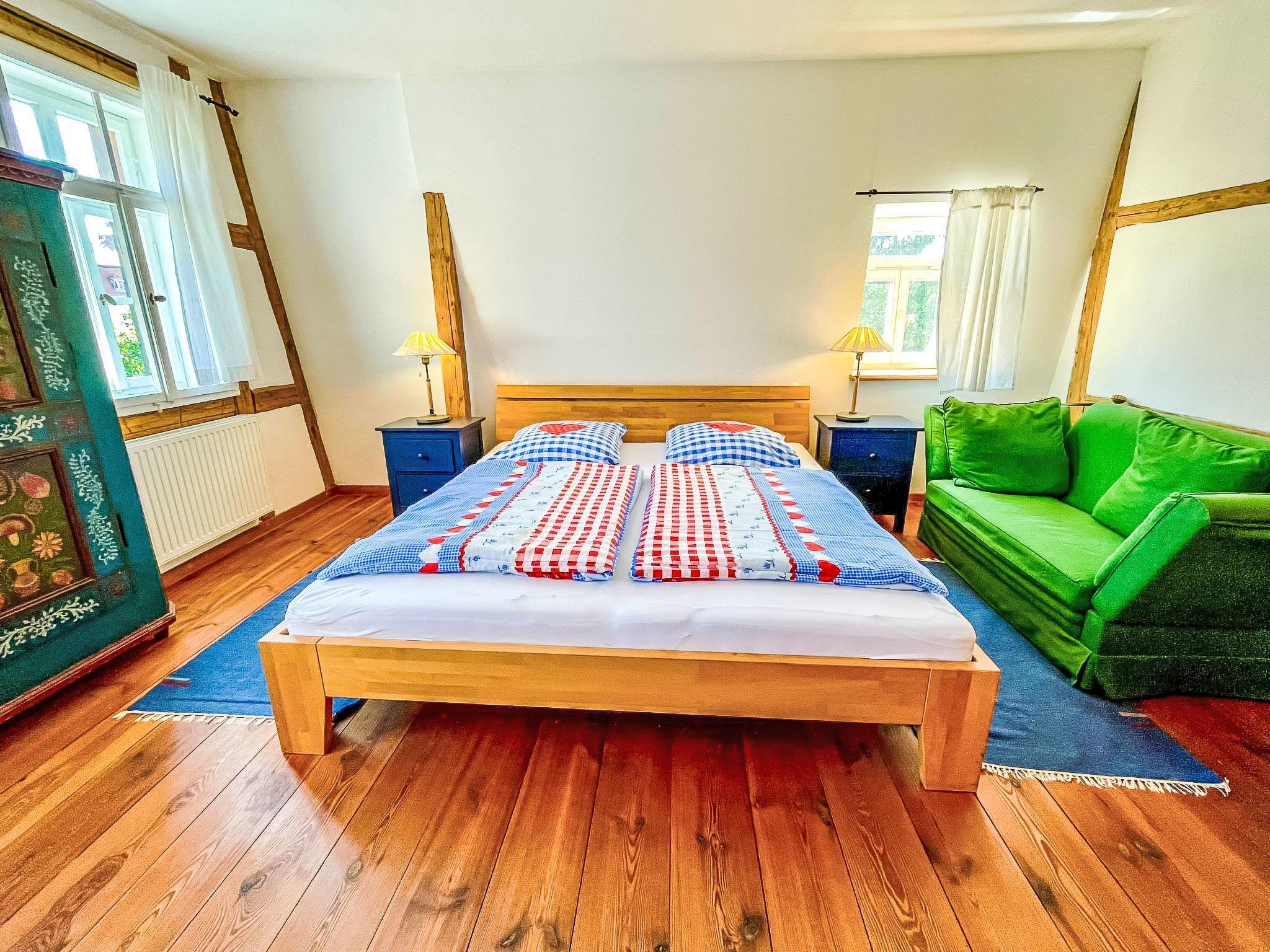 Heyda 15 km von Wurzen: Barockes Schloss "Rittergut Heyda". Direkt am See. Zur Mitbenutzung: Park, Garten, Liegewiese. Kinderspielplatz (Rutschbahn, Schaukel). Zur Alleinbenutzung: Garten (eingezäunt), Liegewiese. Terrasse (20 m2). Im Hause: Zentralheizung. Ruderboot (Absprache am Ort), Parkplatz beim Haus. Lebensmittelgeschäft 2 km, Supermarkt 10 km, Restaurant 3 km, Bushaltestelle 150 m, Bahnstation "Wurzen" 15 km, Freibad 10 km, Hallenbad 10 km. Reitstall 2 km. Bitte beachten: Fahrzeug empfohlen. Ferienwohnung Ref. DE9540.100.1 befindet sich auf dem gleichen Grundstück. Eingebettet in das barocke Schlossensemble, wurden ehemalige Wirtschaftsgebäude des Rittergutes (seit 1846 im Familienbesitz) unter Wahrung des historischen Charakters in ökologische und familienfreundliche Ferienhäuser umgebaut. Im 7 ha grossen Schlossweiher ist Baden erlaubt. Auf Wunsch sind begleitete Pirschgänge oder Jagdausflüge (Jagdschein) gegen Gebühr möglich, landwirtschaftlich interessierte Feriengäste sind in Stall, Feld und Wald willkommen. Wild- und Rindfleischverkauf aus eigener Produktion. Dammwild und Kaninchen können in Gehegen beobachtet werden.