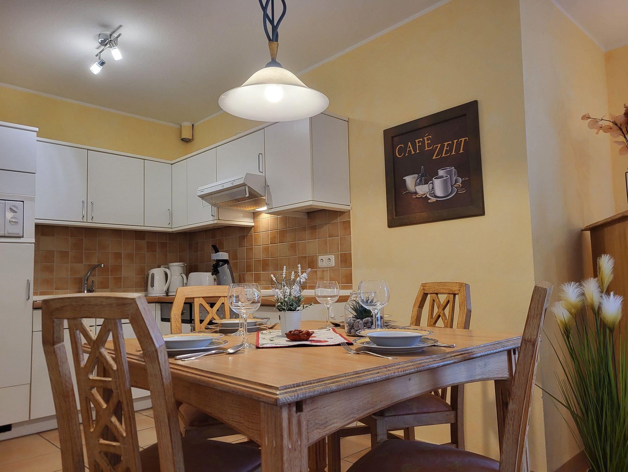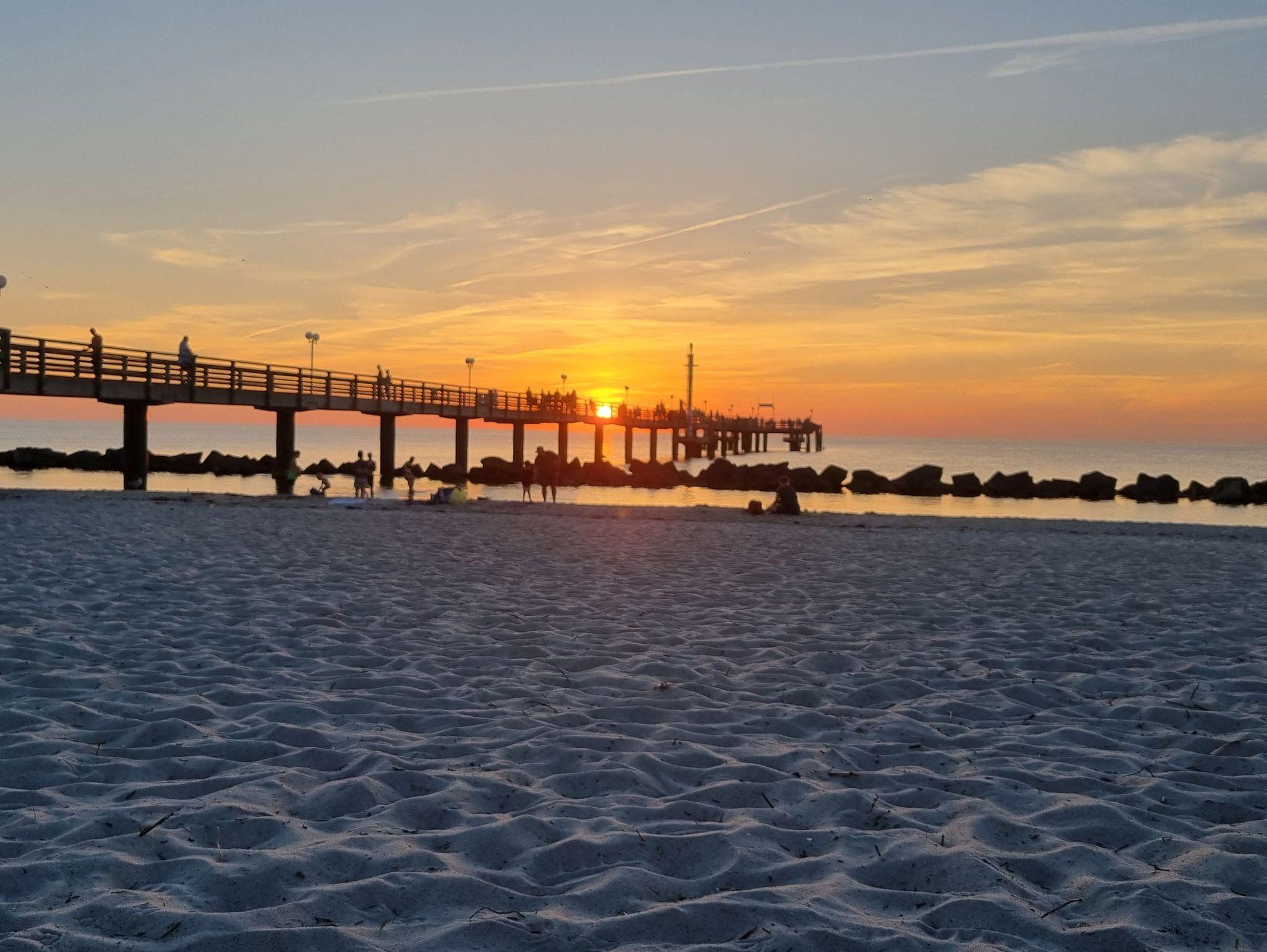 die zentral gelegene und hochwertig ausgestattete Ferienwohnung im Erdgeschoss in der Schmiedestraße ist für bis zu 4 Personen geeignet. Direkt am Wohnzimmer gelangen Sie auf die sonnige Westseitige Terrasse mit Gartenmöbel und Sonnenschutz. Das Wohnzimmer ist mit SAT- TV, offene Küchenzeile mit Essplatz und einer gemütlichen Couch ausgestattet. Die offene Küchenzeile lädt zum Kochen ein, zur Ausstattung gehört ein Herd mit Backofen und Cerankochfeld, Kühlschrank mit Gefrierfach, Mikrowelle und ein Geschirrspüler.Das Schlafzimmer ist ausgestattet mit einem Doppelbett 1,80 x 2,00 m ( getrennte Matratzen ) und das Kinderzimmer mit einem Etagenbett für unsere kleinen Gäste.Das innenliegende Badezimmer verfügt über eine ebenerdige Dusche und Waschmaschine mit Trocknerfunktion. Den feinsandigen Strand an der Seebrücke erreichen Sie in ca. 15 min. Fußweg.. Die Bettwäsche und Handtücher können bei der Zimmervermittlung dazugebucht werden, ebenso können Kinderbett und Hochstuhl für je 10,00 € pro Woche hinzugebucht werden. Ein Wäschepaket 19,50 € (1 Badetuch, 1 Handtuch, 1 Laken, 1 Kopfkissen, 1 Bezug). Die Fenster sind mit mechanischen Außenjalousien ausgestattet. Unsere Wohnung ist eine Nichtraucherwohnung. Haustiere sind herzlich willkommen.Der Parkplatz Nr. 10 befindet sich vor dem Haus. Die Ferienwohnung ist mit WLAN ausgestattet.