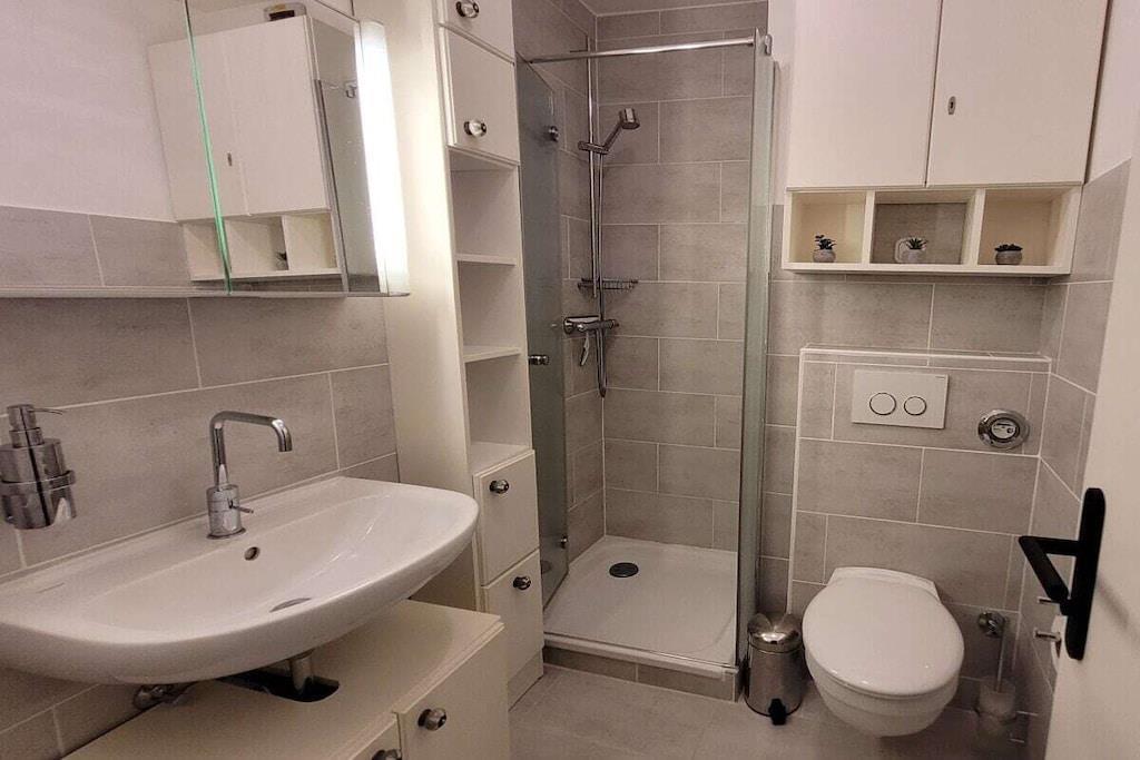 Ausstattung der Wohnung: Die Wohnung umfasst ca. 55 qm. Zwei Schlafzimmer mit je einem Doppelbett (140x200cm) Waschmaschine und Trockner gegen Gebühr im Haus. ModerneKomfort-Einbauküche - komplett ausgestattet Flachbild TV - der Ausblick aus dem Wohnzimmer und dem Balkon ist beeindruckend und fesselnd. Die Segelboote und Fähren, die Vögel im Watt und auf dem Meer sorgen immer wieder für entspannende Momente und Eindrücke.... modernes stylisches Badezimmer mit Duschbad - ein Föhn ist auch vorhanden. Im Wohnzimmer ein allergiekerfreundlicher Laminatboden, Flur und Bad sind gefliest, im Schlafzimmer haben Sie Auslegeware. Gegensprechanlage und Fahrstuhl