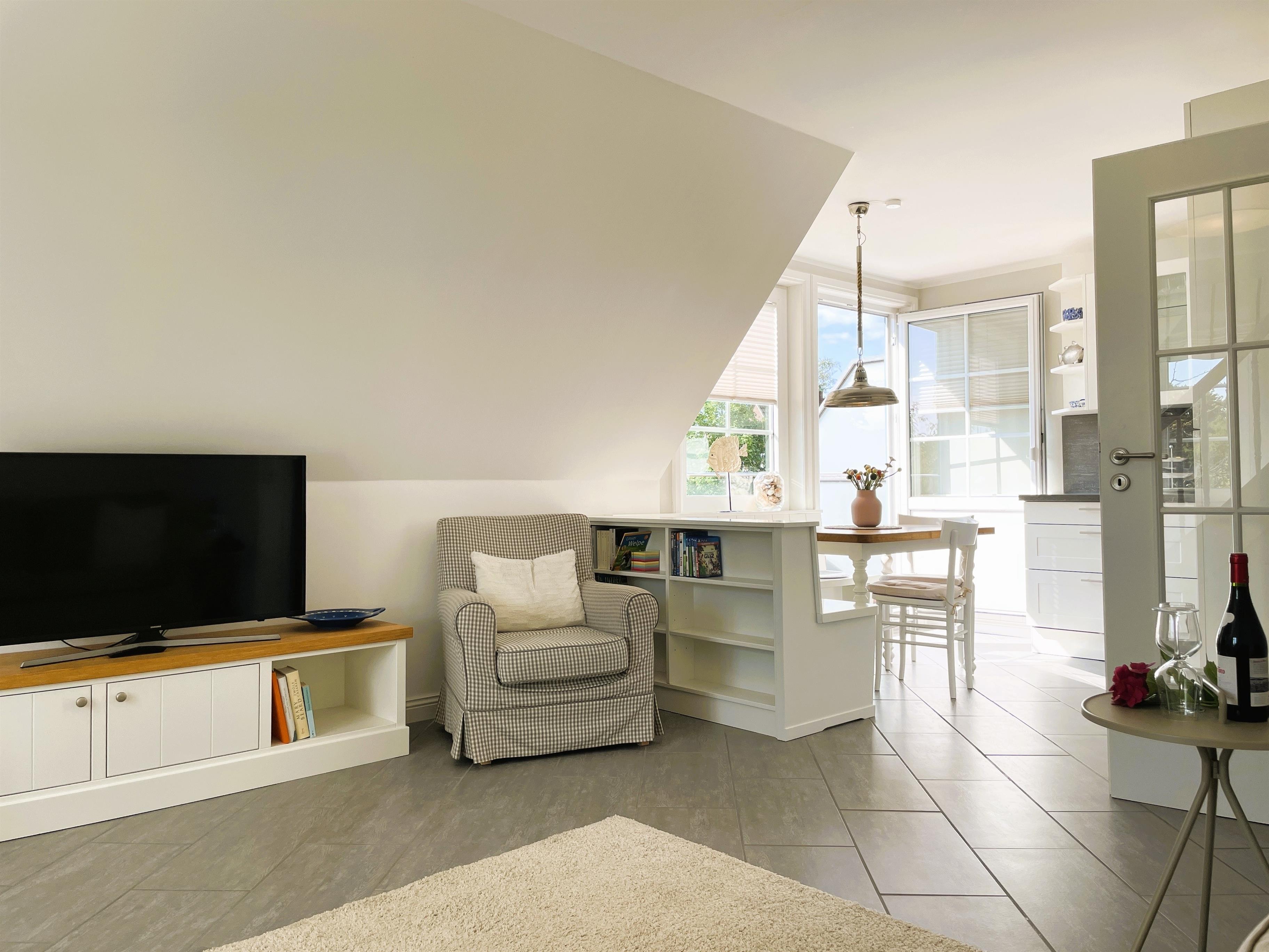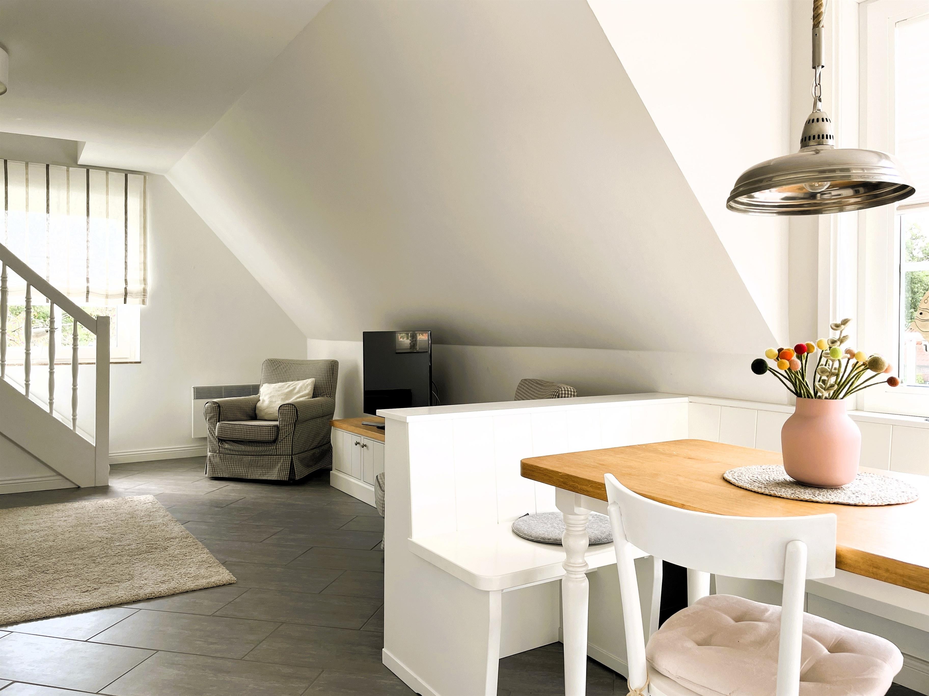 Am Grünstreifen in Wyk befindet sich diese geschmackvoll eingerichtete Wohnung im ersten Stock in einer ruhigen Lage.