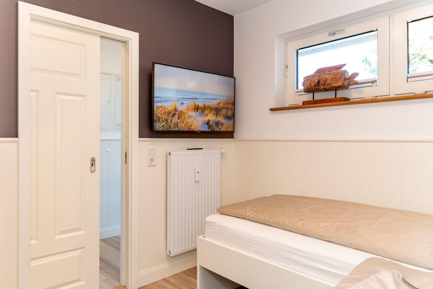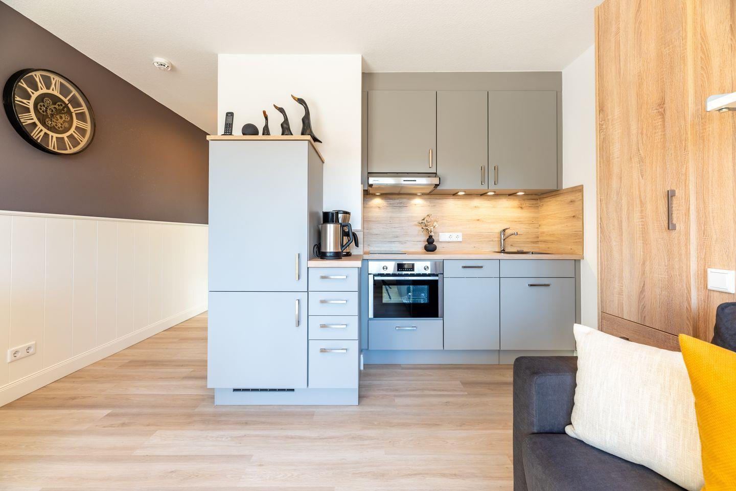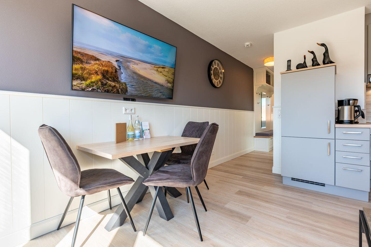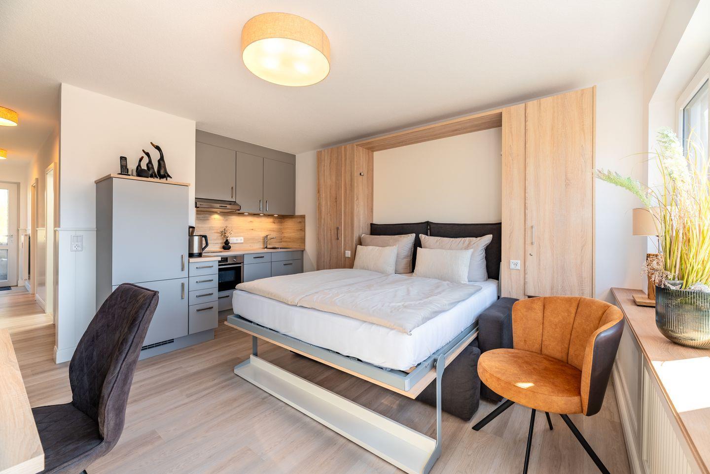 Die Wohnung erstreckt sich über 38 m² und bietet ausreichend Platz für bis zu drei Personen. Im Obergeschoss gelegen, erreichen Sie die Wohnung bequem und mit viel Tageslicht durch die großen Fenster, die für eine helle und freundliche Atmosphäre sorgen. Die Ausstattung ist modern und wurde im Jahr 2022 vollkommen renoviert, sodass Sie in einem ansprechenden Ambiente entspannen können. Bei einer Tasse Kaffee oder einem Glas Wein genießen Sie den Ausblick und die frische Meeresbrise. Gartenmöbel und ein Sonnenschirm garantieren, dass Sie auch im Freien komfortabel entspannen können.