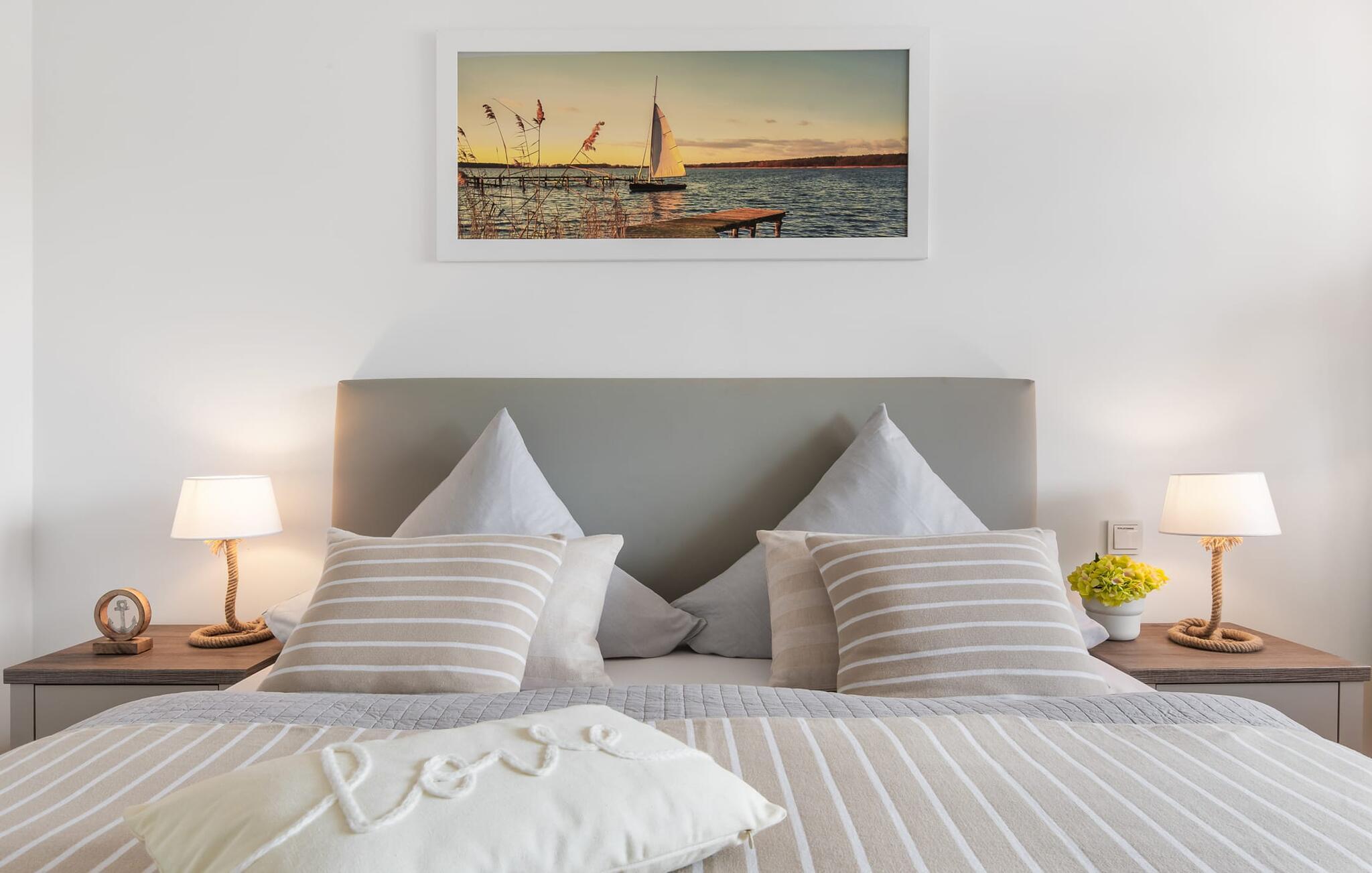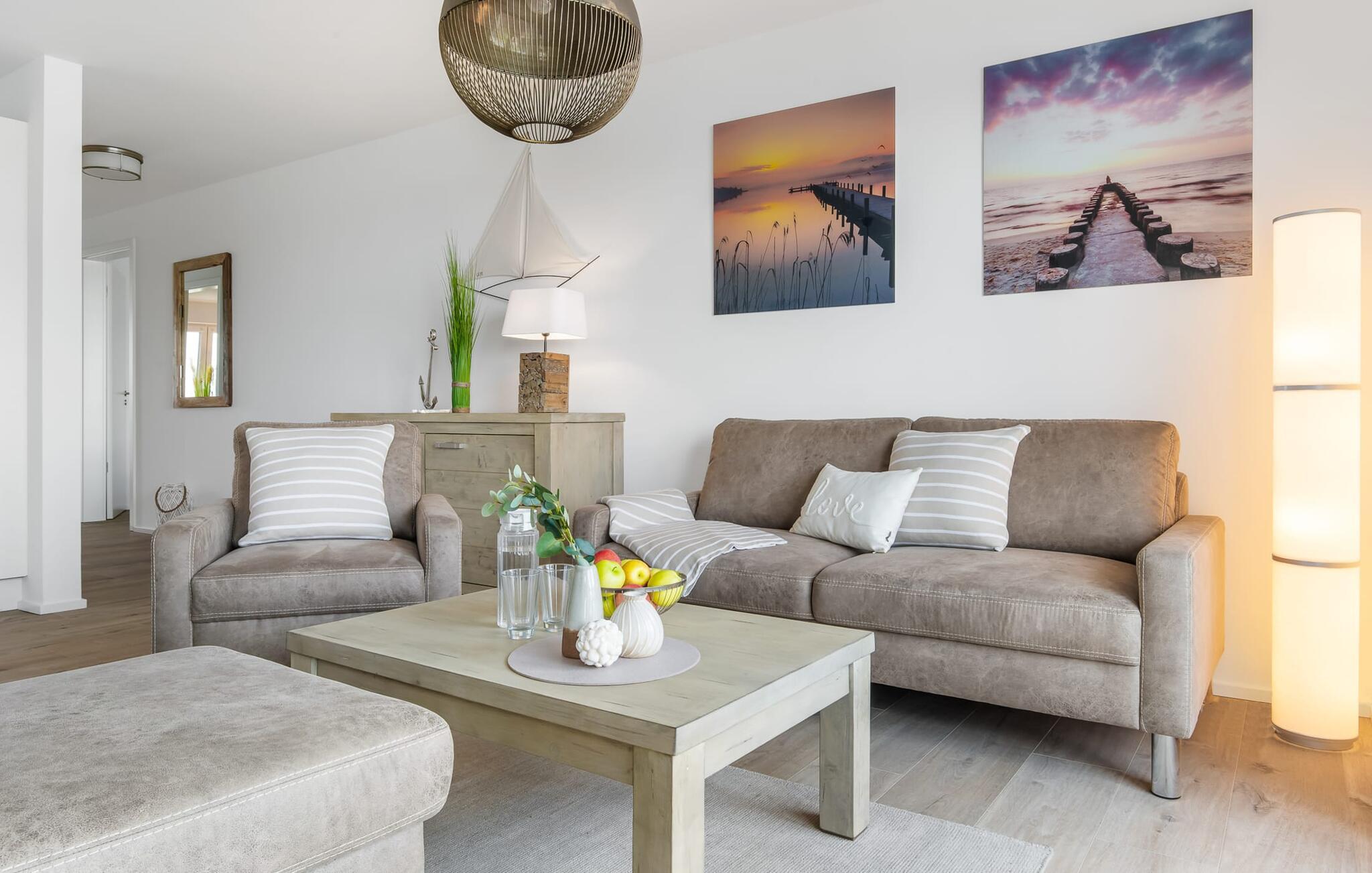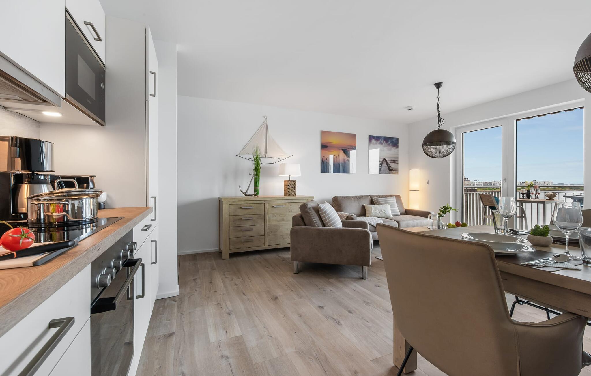 Die hochwertig ausgestattet und stilvoll eingerichtete Ferienwohnung für vier Personen verfügt über einen sagenhaften YACHTHAFENBLICK und punktet mit einer exklusiven Lage unmittelbar an der Hafenpromenade des OstseeResort Olpenitz.