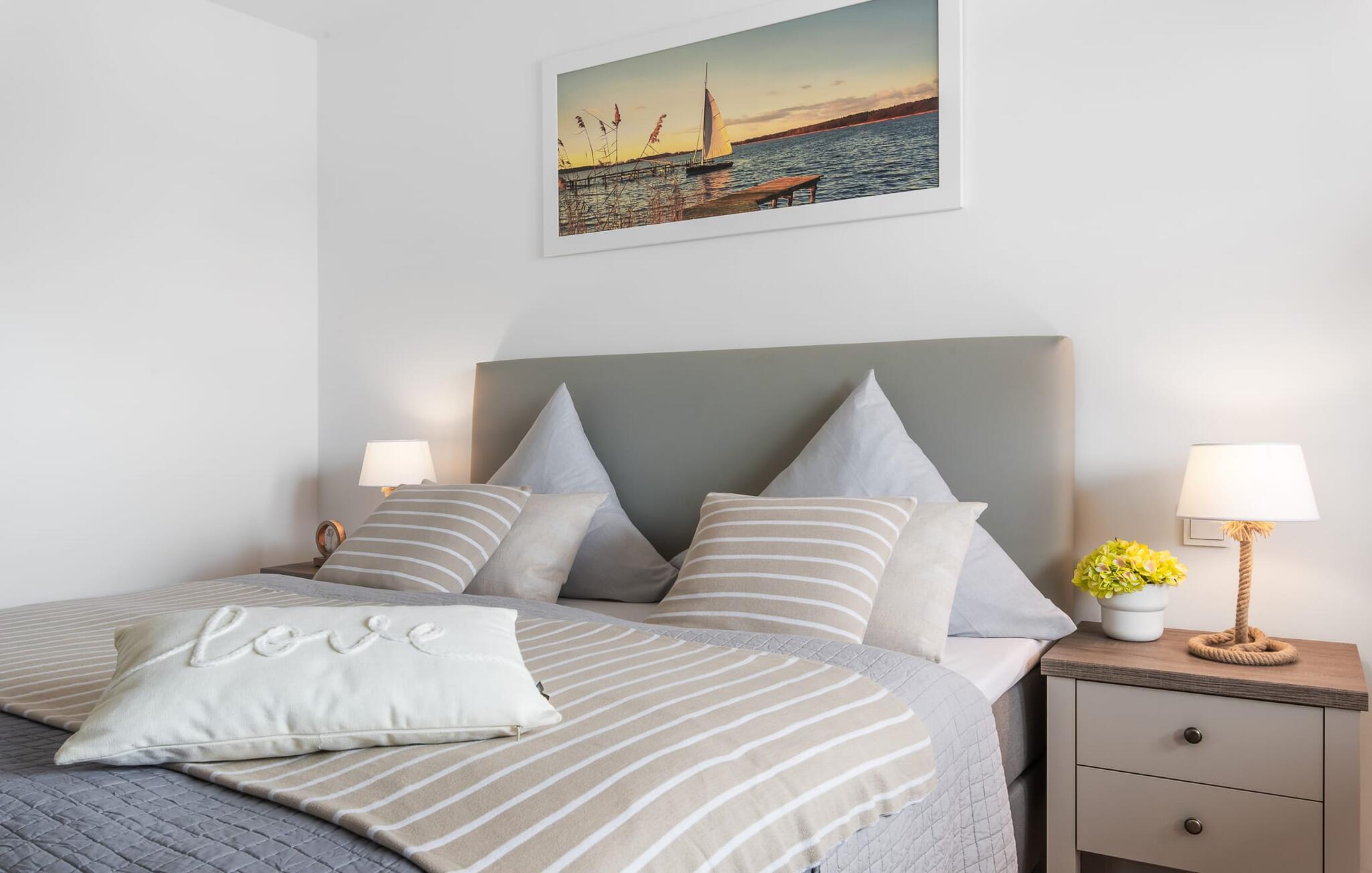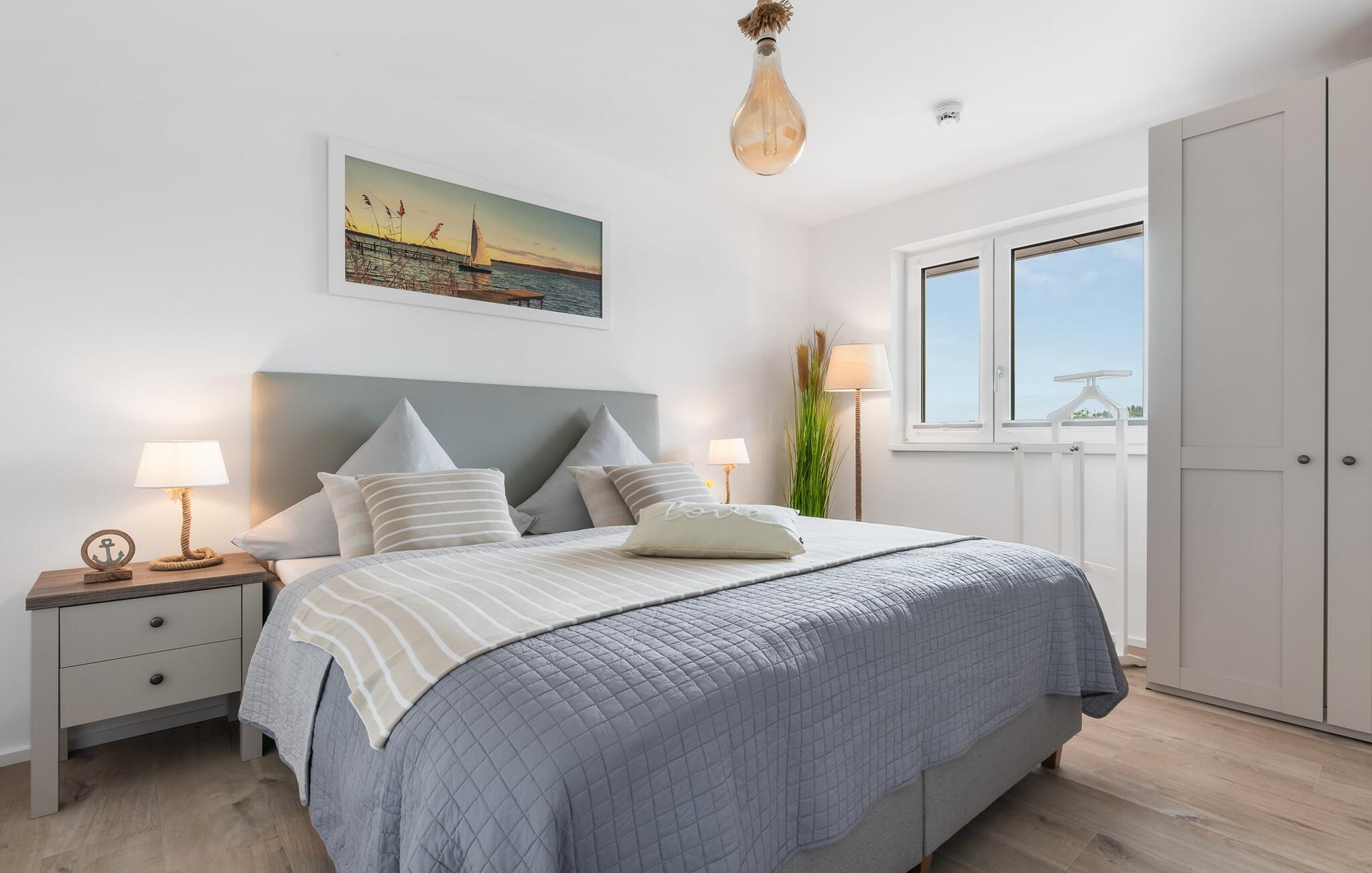 Die lichtdurchflutete Wohlfühloase mit bodentiefer Fensterfront und Balkon, bietet zudem einen unglaublichen YACHTHAFENBLICK mit Hafenkino, Blick auf die schwimmenden Häuser, den Ostseefjord Schlei mit vorbeifahrenden Segelschiffen und den Leuchtturm von Schleimünde. Macht es euch im Wohnbereich oder auf dem Balkon bequem und beobachten euch die vorbeifahrenden Segelschiffe in Begleitung der farbenfrohen Abendsonne.