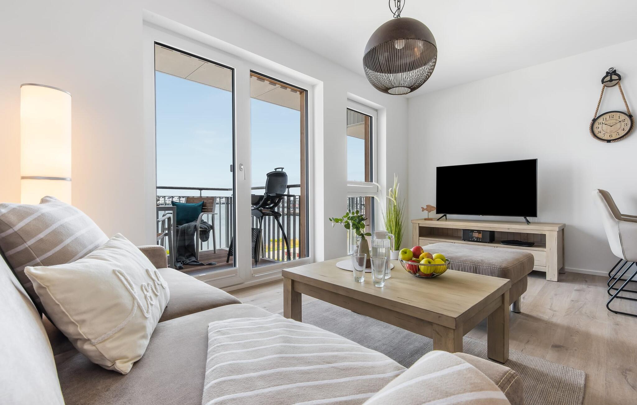 Moderne Ferienwohnung mit spektakulärem Yachthafenblick im OstseeResort Olpenitz.