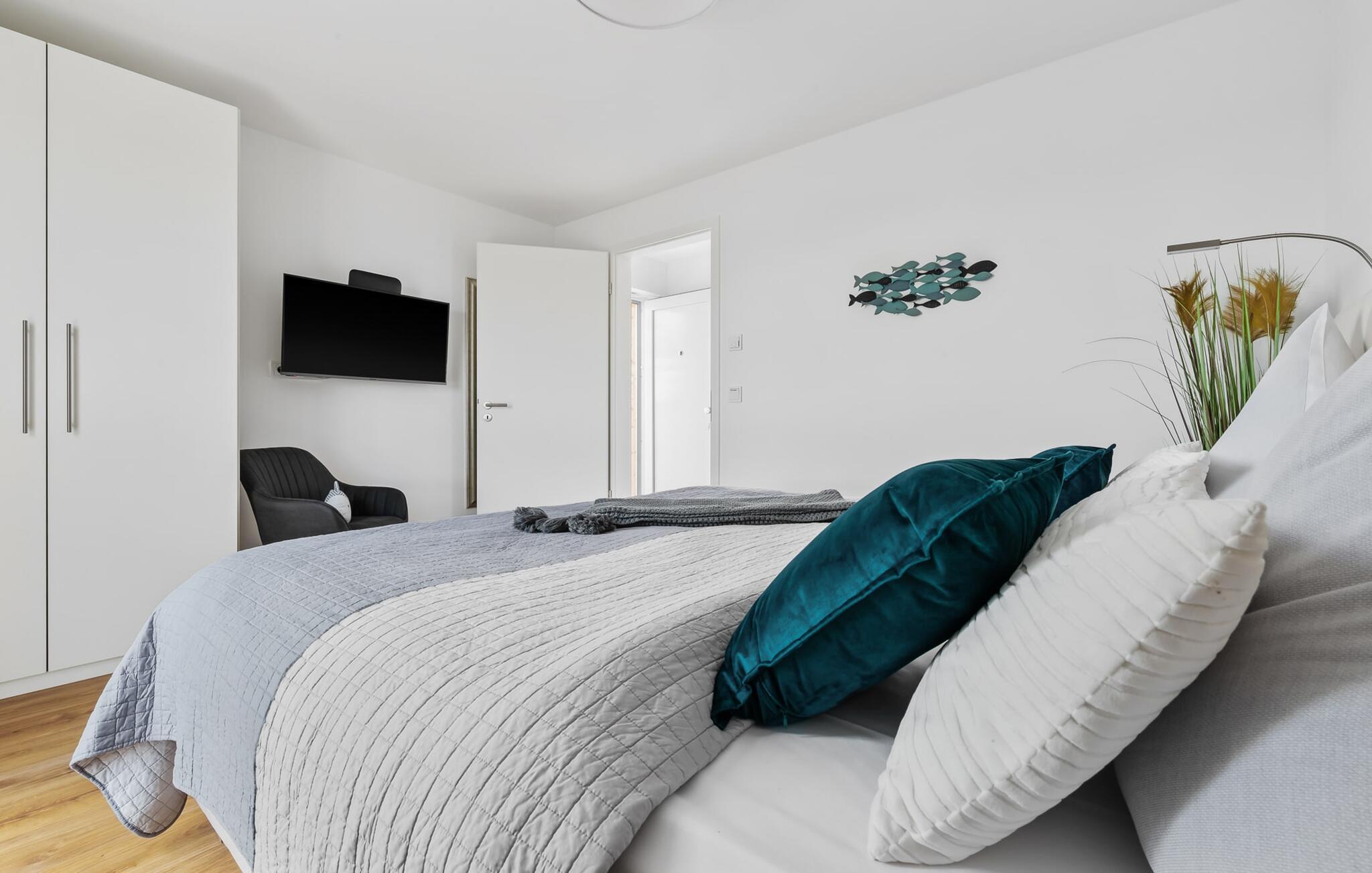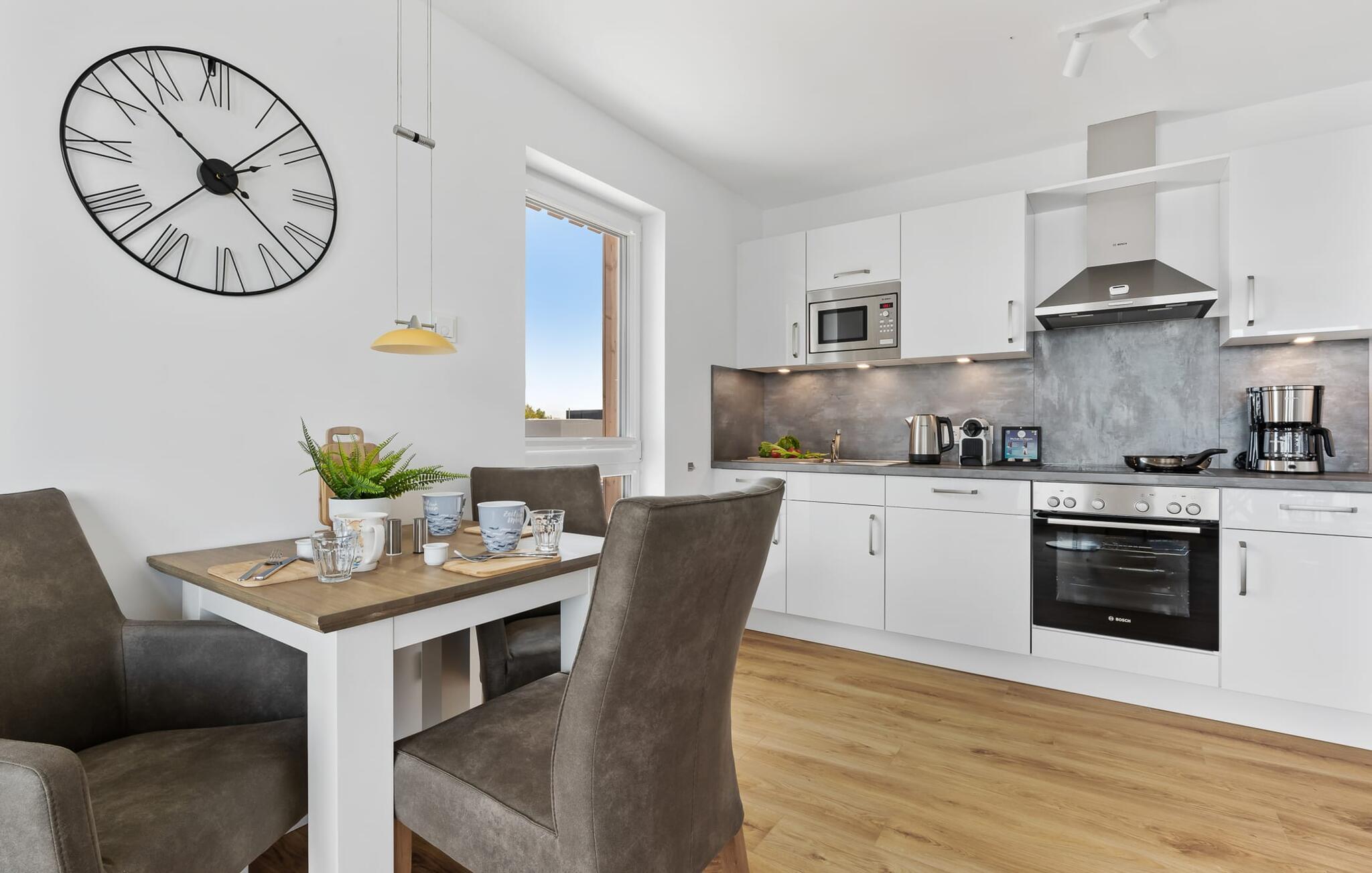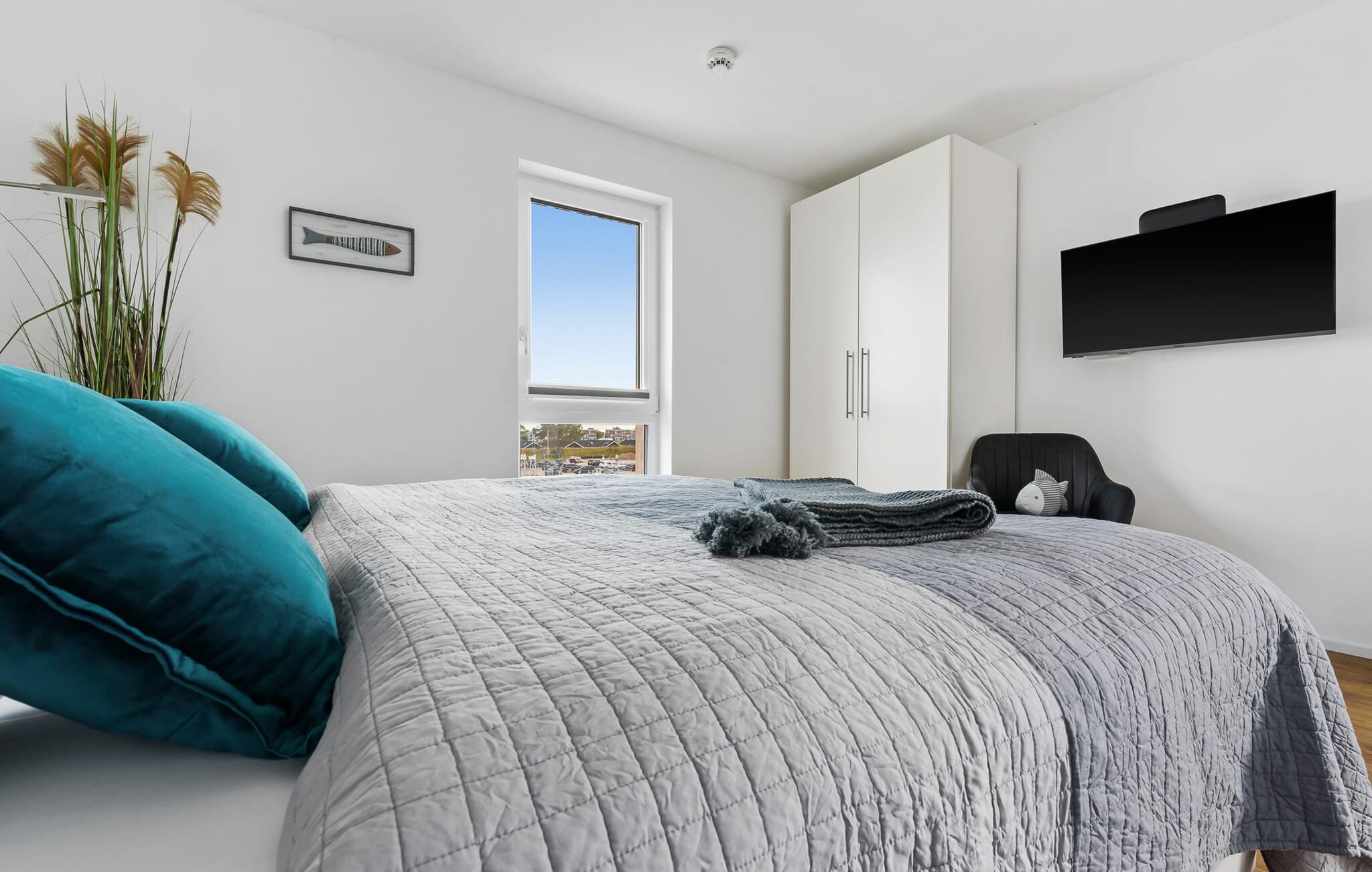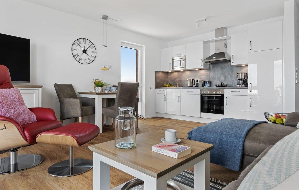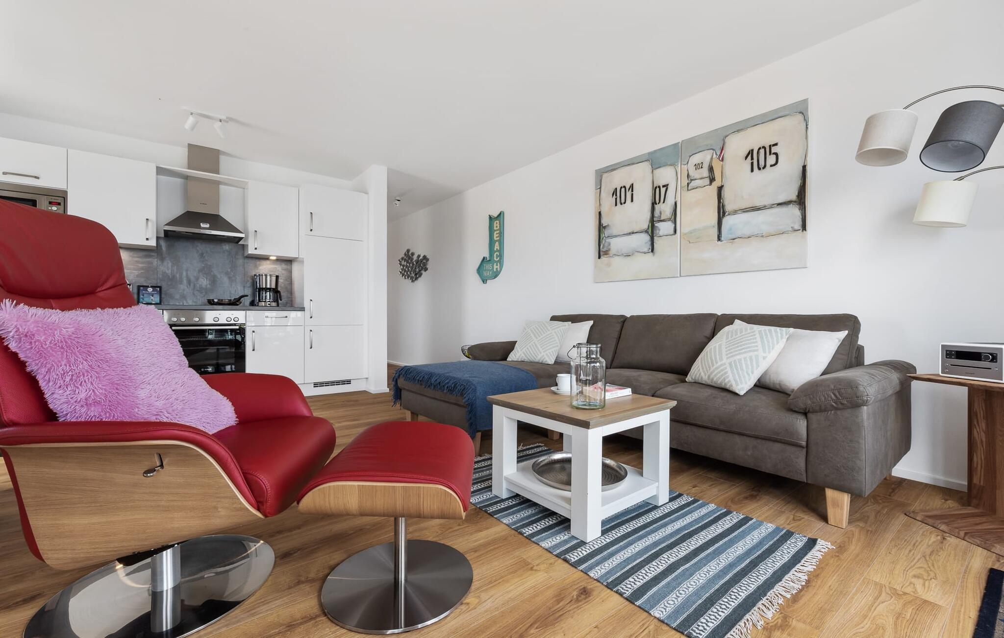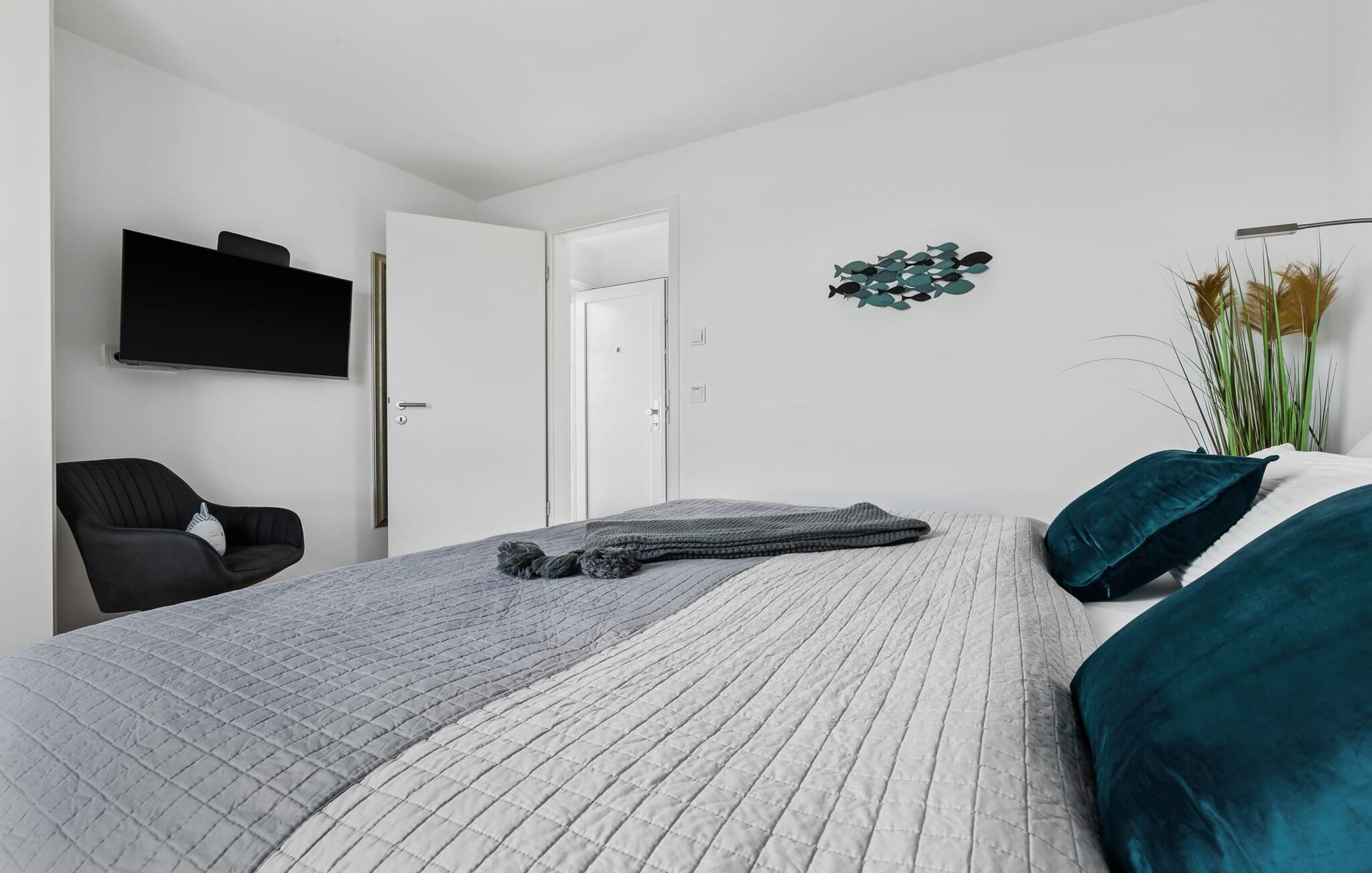 Schließt die Wohnungstür auf, tretet ein und fühlt euch einfach nur wohl! Euer Blick fällt direkt durch die bodentiefen Fenster über den Balkon auf den Hafen und Wasser bis zum Horizont: Der Alltag ist bereits vergessen.