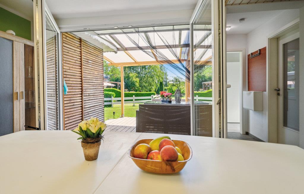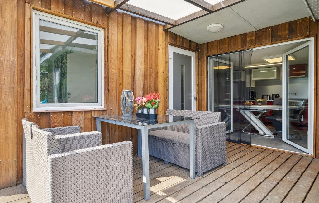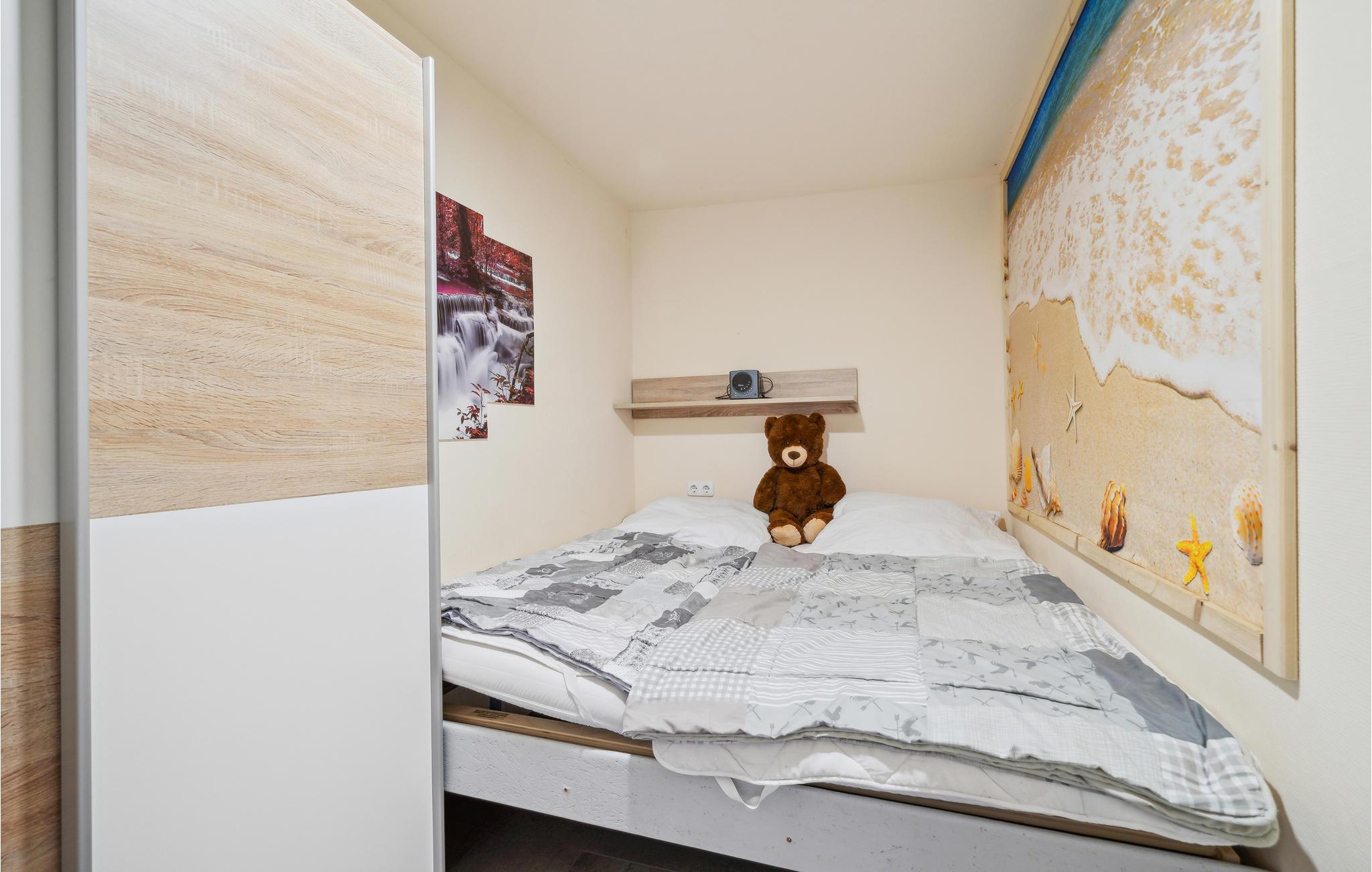 Entfliehen Sie Ihrem hektischen Familienalltag in der Stadt und verbringen in diesem kompakten Ferienhaus einen erholsamen Urlaub. Genießen Sie die hellen Räume, die mit großen Bildern oder Motivtapeten dekoriert sind und dabei eine schöne Wohnatmosphäre schaffen, in der Sie sich wohlfühlen können. Der Wohnraum verbindet das Kochen in der gut ausgestatteten Küche, das Entspannen auf dem Sofa und das Essen und Spielen am Esstisch. Sie können aber auch auf der überdachten Terrasse zusammenkommen und Ihre Abende hier ausklingen lassen. Von diesem Ferienhaustyp sind mehrere nebeneinander vorhanden und können z. B. von befreundeten Familien gebucht werden.