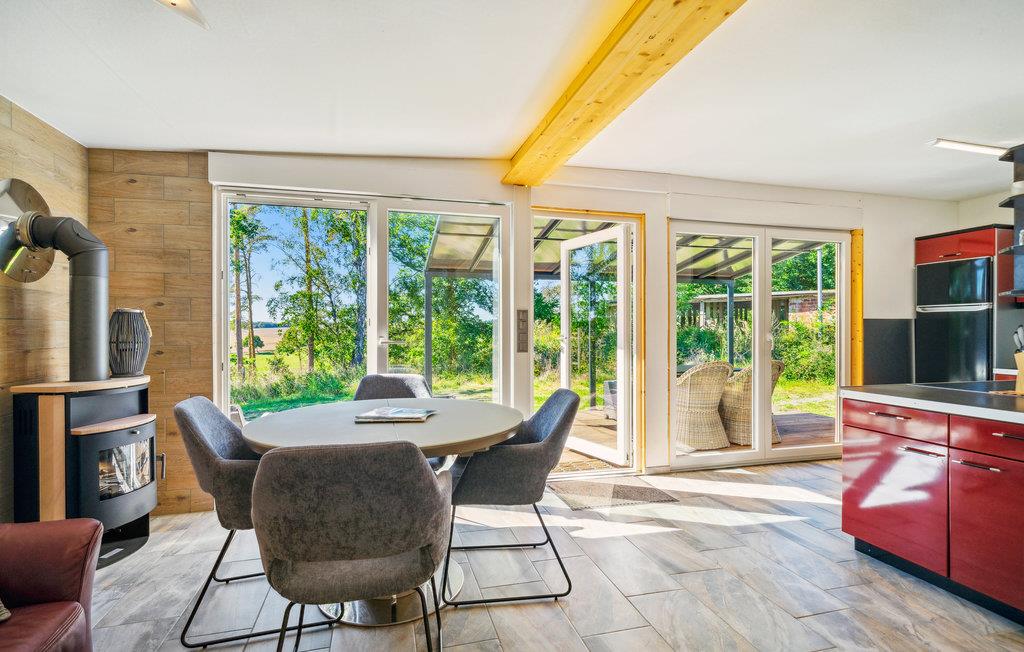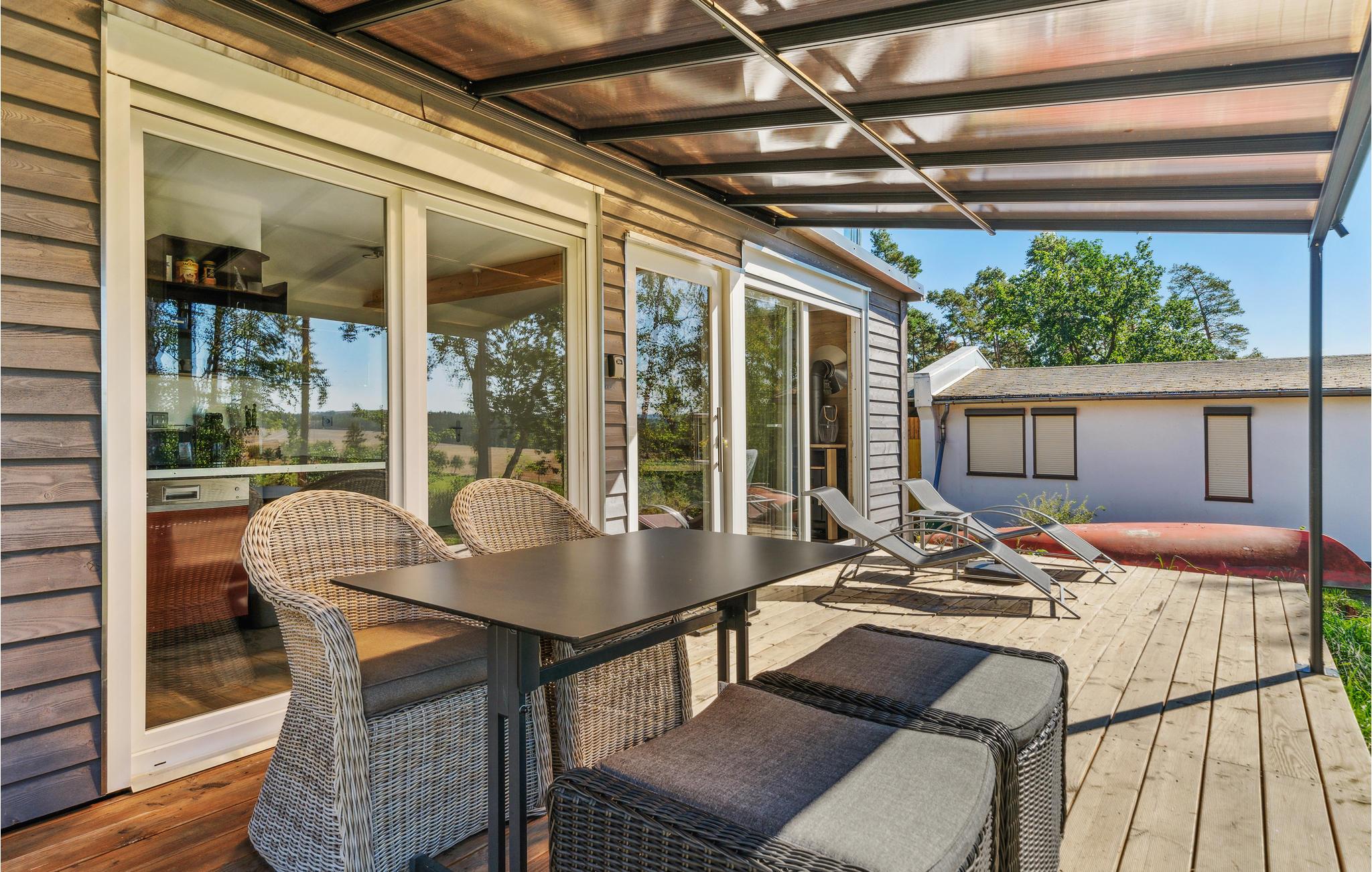 Genießen Sie mit Ihrer Familie einen großartigen Urlaub in dieser ruhigen und idyllischen Umgebung, direkt am See. Das schöne Haus überzeigt durch seinen hellen Wohnraum, der über mehrere Türen und Fenster mit der Sonnenterrasse verbunden ist. Hier können Sie das Leben und Kochen im Inneren und dem Essen im Freien verbinden. Lesen Sie ein Buch auf der Sonnenliege und schauen Ihren Kindern beim Toben im Garten zu.