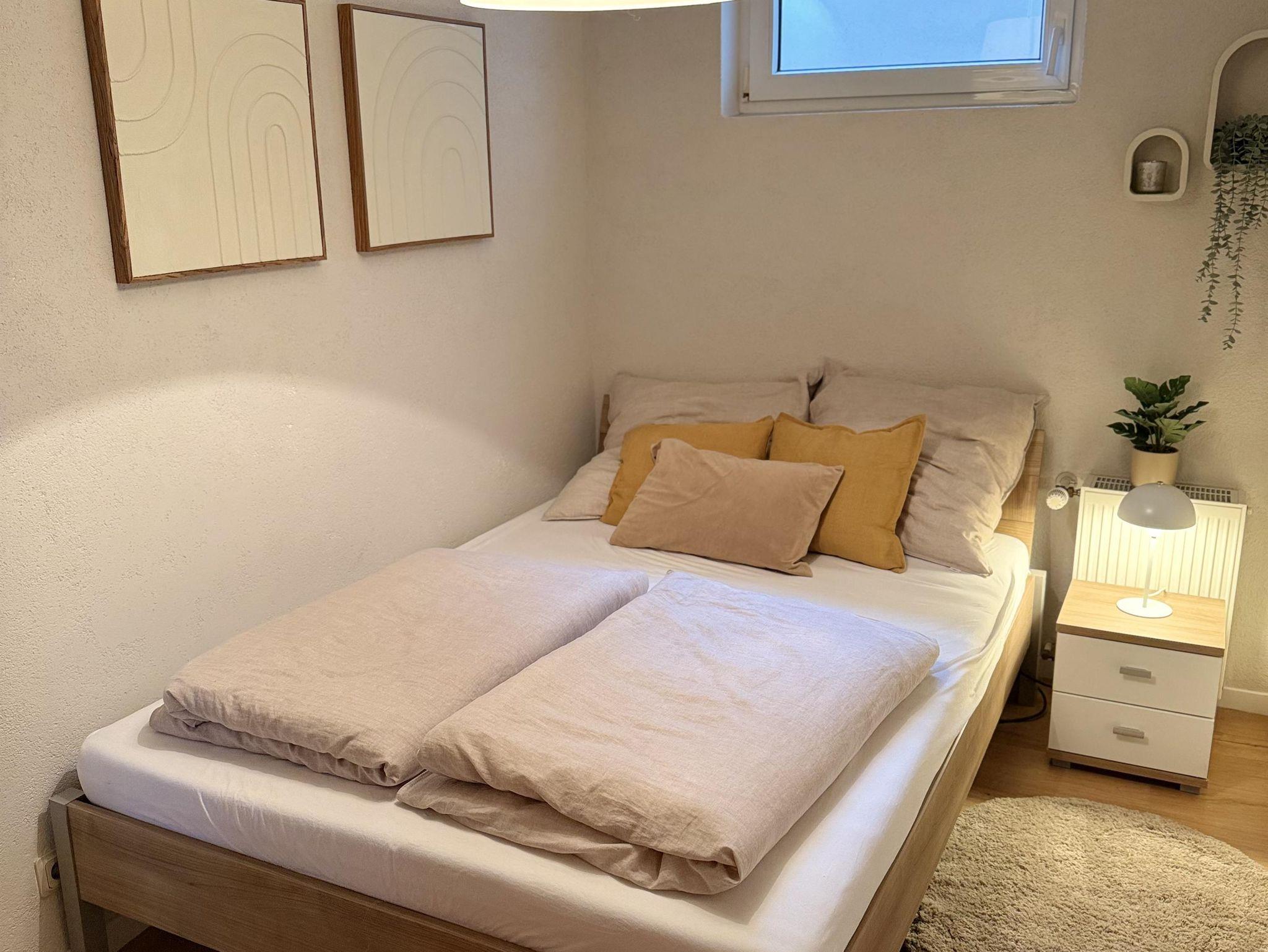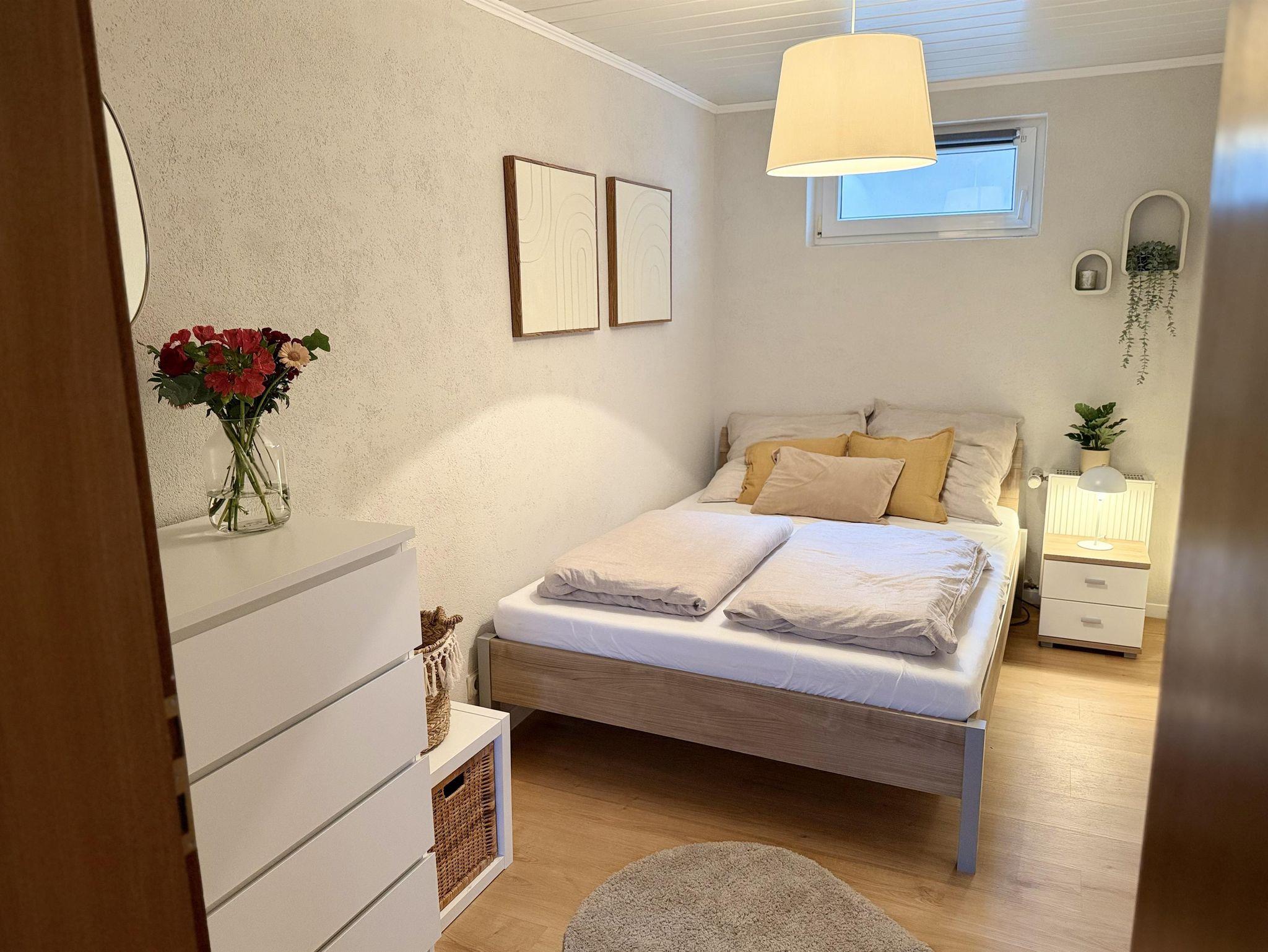 • Schlafzimmer 2: Gemütlich eingerichtet mit einem französischen Bett (140x200 cm) für bis zu zwei Personen.
